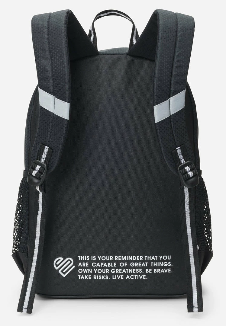 Our girls’ backpacks are super-spacious and just right for your on-the-go girl. A front zipper pocket keeps smaller, more important essentials organized. Two side pockets are perfect for tucking away water bottles and other beverages. The larger zipper panel secures her other items and has a padded interior sleeve that protects her electronic devices. A top handle and cushioned straps offer comfy, hands-free carrying.  A bold pattern gives her standout style—especially when you’re trying to spot her in the after-school crowd. Plus, a hangtag and secret message boast positive sentiments to encourage her along the way.