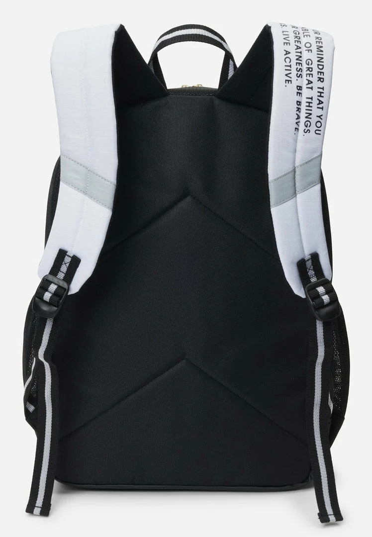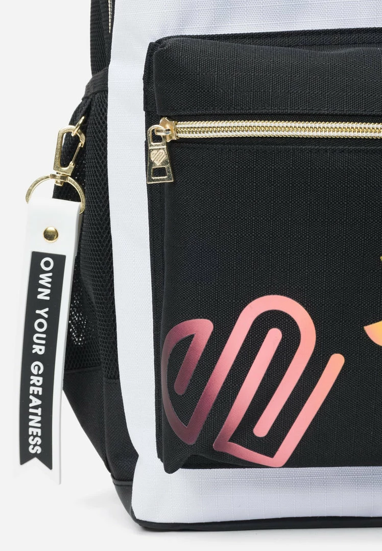 Our girls’ backpacks are super-spacious and just right for your on-the-go girl. A front, color-block zipper pocket keeps smaller, more important essentials organized. Two mesh side pockets are perfect for tucking away water bottles and other beverages. The larger zipper panel secures other items and has a padded interior sleeve that protects her electronic devices. The top handle and cushioned, color-block straps offer comfy, hands-free carrying; plus, positive sentiments on the straps and zipper tab encourage her along the way.