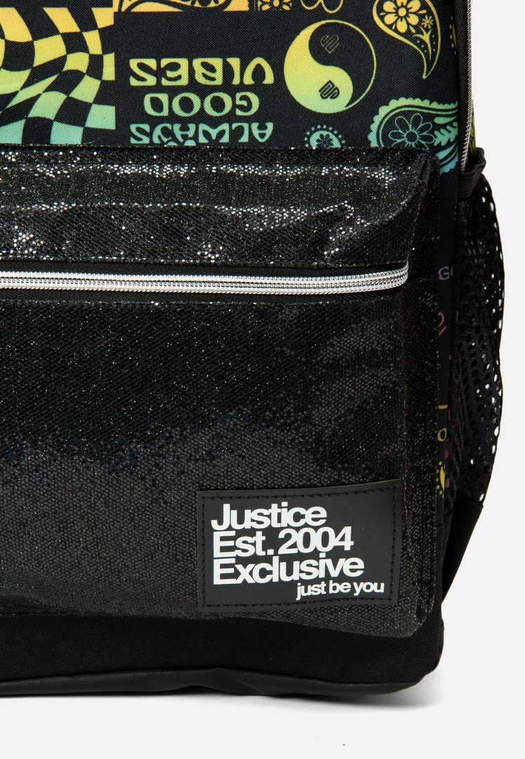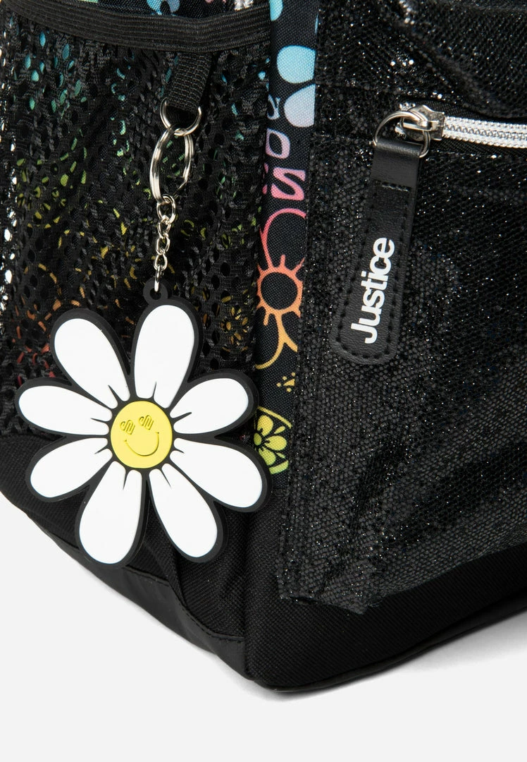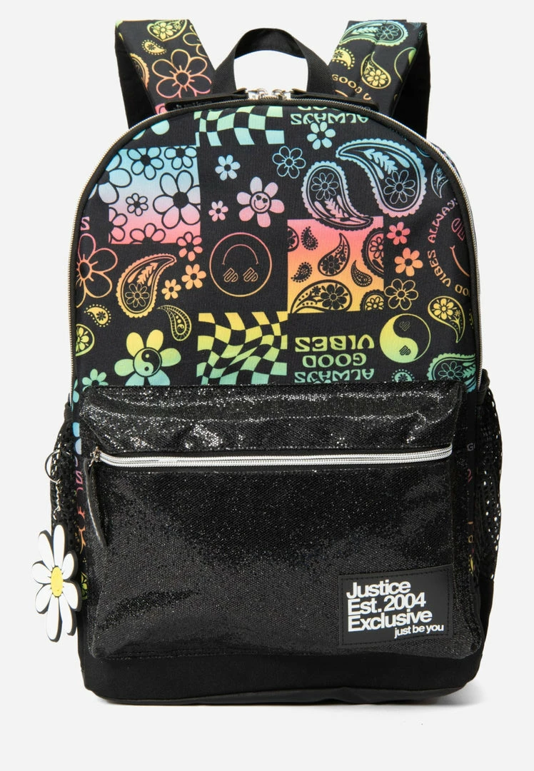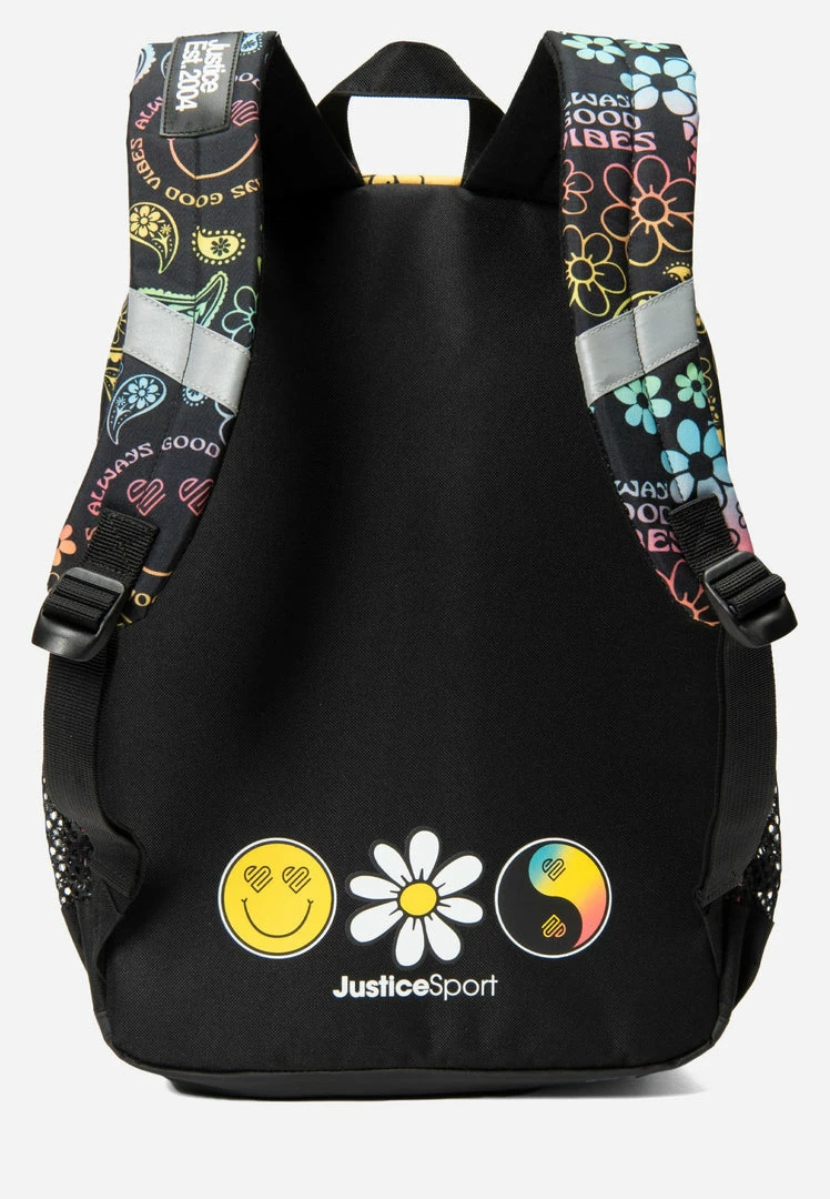 Even your girls’ books deserve to go to school in style, so we designed our girls’ backpack in a colorful graphic with plenty of space for her school essentials and her practice gear–– including a secure interior slip pocket for her laptop. This psychedelic patterned carryall has a secure double-zip closure and features a sparkling glitter front zip pocket, side pocket, water bottle pocket, padded adjustable straps, and a comfortable cushioned back. And the smiling daisy keychain makes it easy to keep her keys in sight.