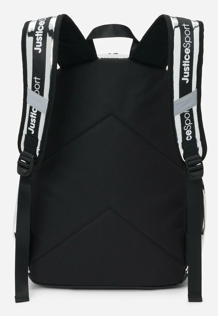 Our girls’ backpacks are super-spacious and just right for your on-the-go girl. A front zipper pocket keeps smaller, more important essentials organized. Plus, a color-block patch punctuates the front of it. Two side pockets are perfect for tucking away water bottles and other beverages. The larger zipper panel secures other items and has a padded interior sleeve that protects her electronic devices. The top handle and cushioned, color-block straps offer comfy, hands-free carrying; plus, logo taping highlights the straps. A positive sentiment on the zipper tab encourages her along the way. And the bold, allover metallic design gives her standout style—especially when you’re trying to spot her in the after-school crowd.