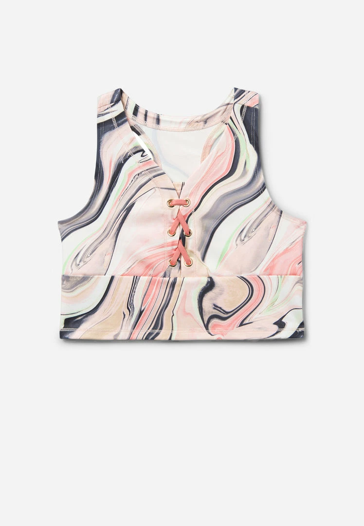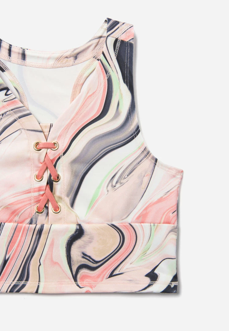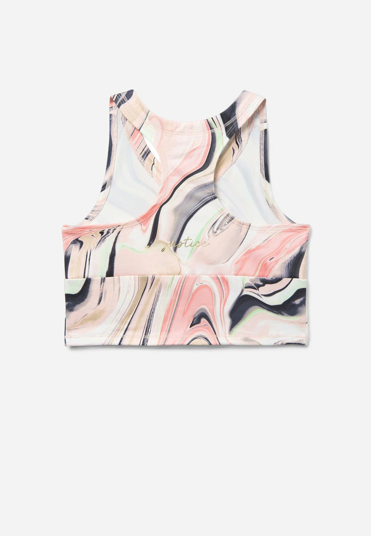 We elevated our girls’ sports bras with all the extra-special details Collection X by Justice is known for, like the bold allover pattern and lace-front design. The scoop neckline creates a form-fitting shape. They have tons of stretch—which promises a comfy fit. Plus, the thick band and wide straps promise a secure, fuss-free fit. Â