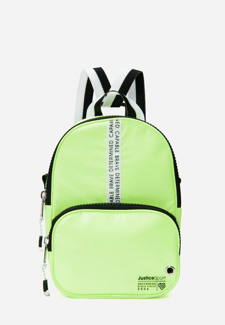 Our girls’ backpacks are just right for your on-the-go girl. A front zipper pocket keeps smaller, more important essentials organized. The larger zipper panel secures her other items. A top handle and two adjustable straps offer comfy, hands-free carrying—plus they’re color blocked for extra panache. The bold hue gives her standout style—especially when you’re trying to spot her in the after-school crowd. Plus, logo taping boasts positive sentiments to encourage her along the way.