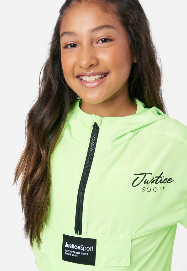 Our girls’ windbreaker is the perfect outerwear style when there’s a bit of a chill in the air. The elastic cuffs and waistband give it a stay-in-place fit, while the half-zip front closure makes on-and-off styling effortless. And instead of your girl carrying our lightweight jacket over her arms or around her waist, your girl can turn the large front-zip pocket—featuring our embroidered J Sport logo patch—inside out to convert it into bag that easily adjusts using the thin straps.
