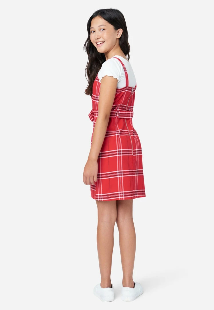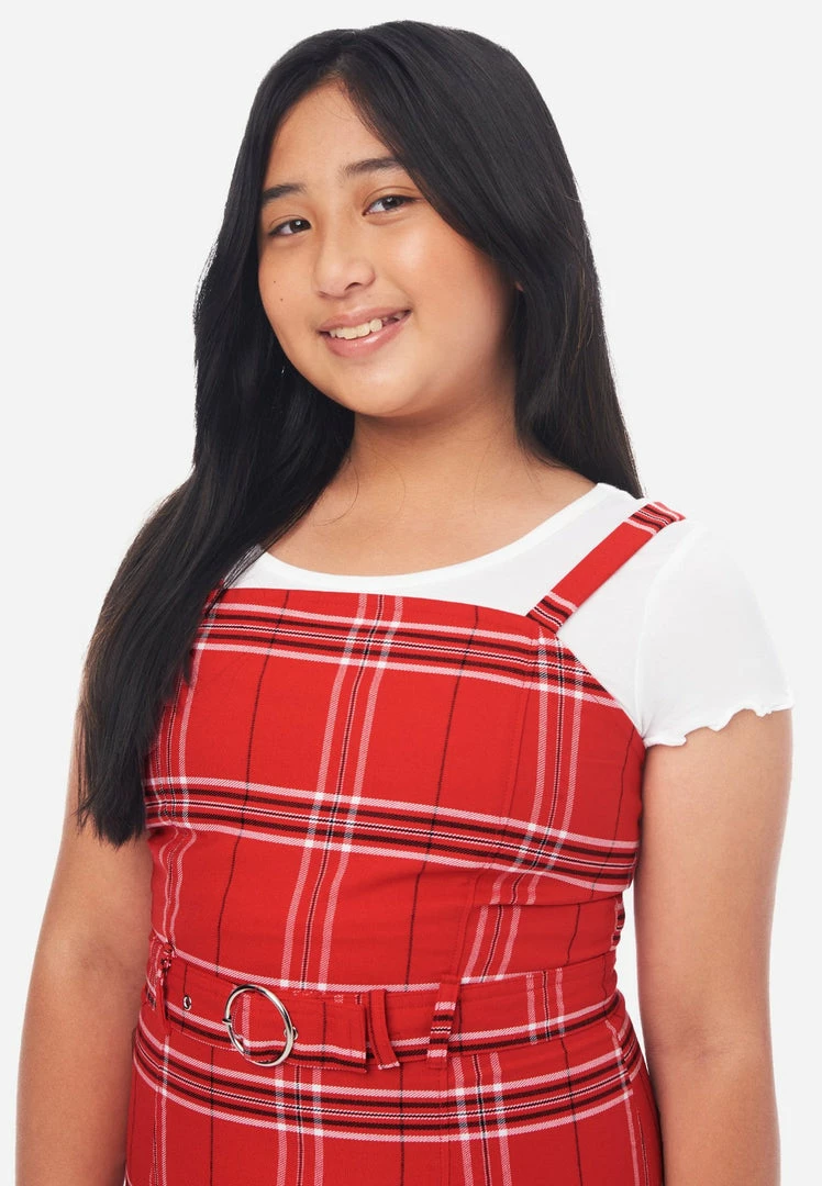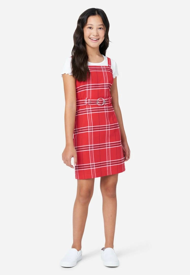 Stretchy French terry fabric gives our girls’ dresses a cozy fit. The plaid pattern lends classic style. A belt ties at the waist. A gleaming zipper—up the back—makes putting it on a breeze. Plus, they come with an attached tee. This means they are easy to style and easier to wear—she won’t have to worry about experiencing a bunched-up feeling.