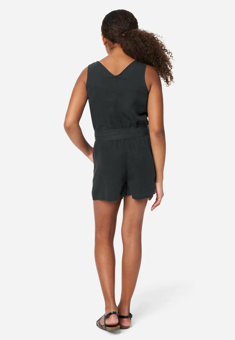 Our all-in-one girls’ rompers are easy to style and easier to wear. The neutral hues pair effortlessly with her accessories. The gleaming zipper makes putting it on a breeze. A belt ties at the waist. She can tuck her small items into two slip pockets. And the relaxed fit and stretch fabric make it super-comfy. Â