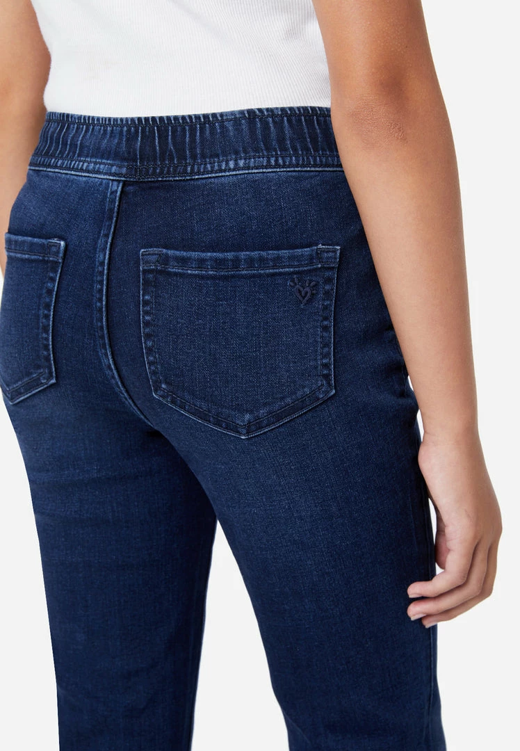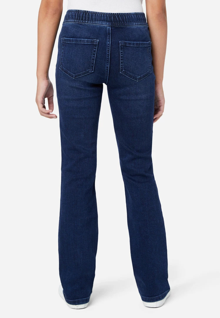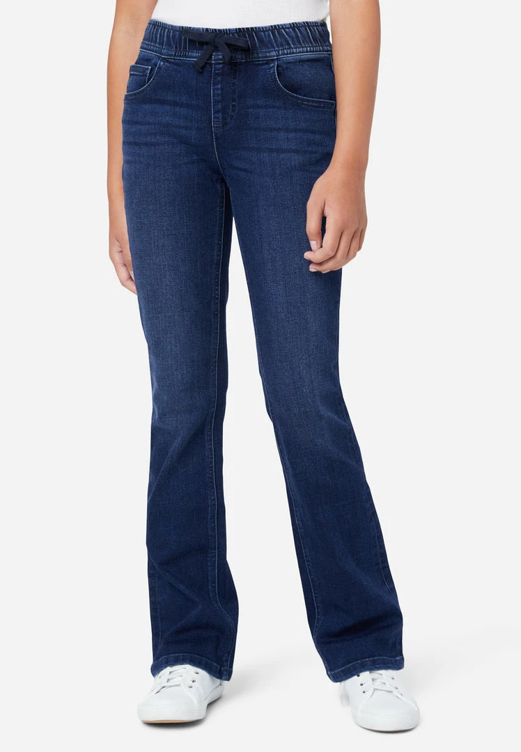 Our girls’ jean leggings have a stretchy, contour pull-on waistband—that keeps up with all her movement. Rise in the back prevents gapping. The relaxed fit and subtly flared legs offer classic style. And welted seams make them super-durable. They’re perfect for pairing with her favorite tees and sweatshirts. Plus, the comfy, stretch-cotton fabric is made with Repreve® denim—which is created using recycled materials. This means not only will your girl look good while wearing her fashion, but she’ll feel good about her fashion, too.Â