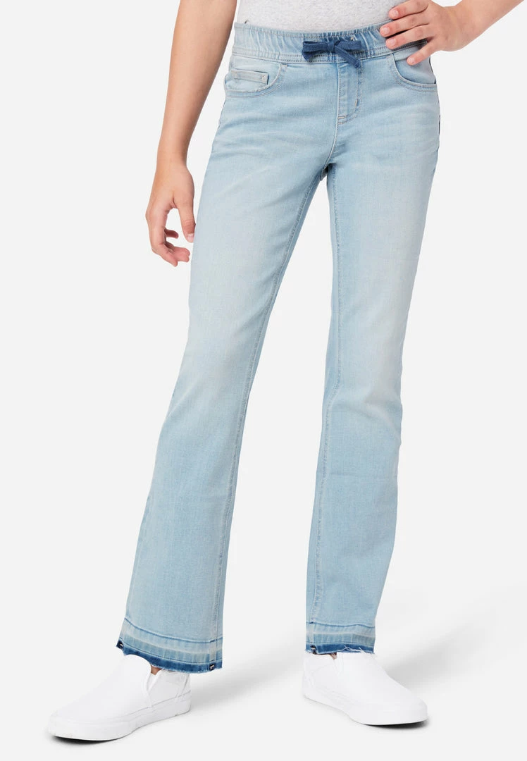 Our girls’ jean leggings have a stretchy, contour pull-on waistband—that keeps up with all her movement. Rise in the back prevents gapping. The relaxed fit and subtly flared legs offer classic style. And welted seams make them super-durable. They’re perfect for pairing with her favorite tees and sweatshirts. Plus, the comfy, stretch-cotton fabric is made with Repreve® denim—which is created using recycled materials. This means not only will your girl look good while wearing her fashion, but she’ll feel good about her fashion, too. Â