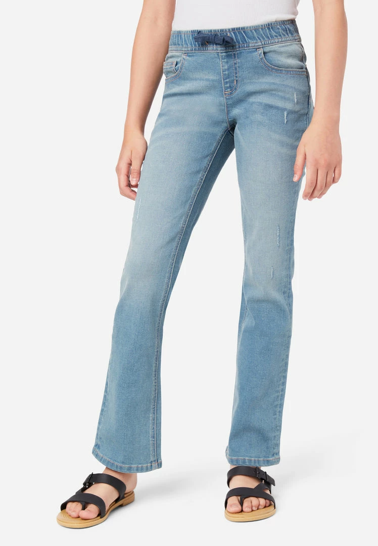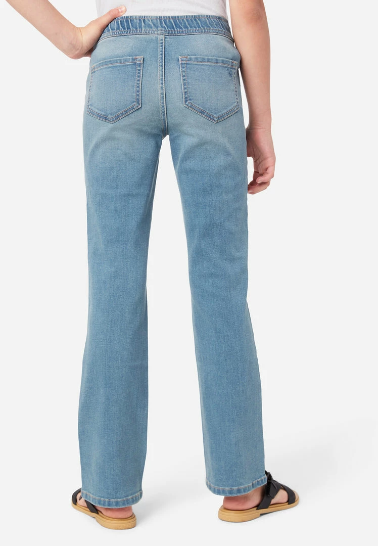 Our girls’ jean leggings have a stretchy, contour pull-on waistband—that keeps up with all her movement. Rise in the back prevents gapping. The relaxed fit and subtly flared legs offer classic style. And welted seams make them super-durable. They’re perfect for pairing with her favorite tees and sweatshirts. Plus, the comfy, stretch-cotton fabric is made with Repreve® denim—which is created using recycled materials. This means not only will your girl look good while wearing her fashion, but she’ll feel good about her fashion, too.
