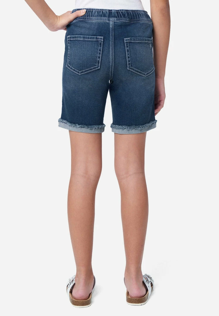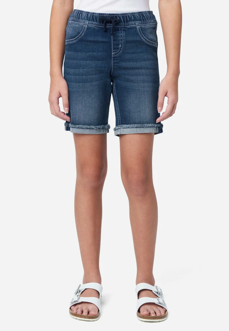 We designed our girls’ Bermuda shorts from soft, stretchy denim for the right dose of comfort in your girl’s daily style. They sport a stretchy pull-on waistband that keeps up with all her movement. They have two slip pockets in the back for her small essentials. And fraying highlights the rolled cuffs. They’re perfect for pairing for tanks and tees from our Everyday Faves collection.