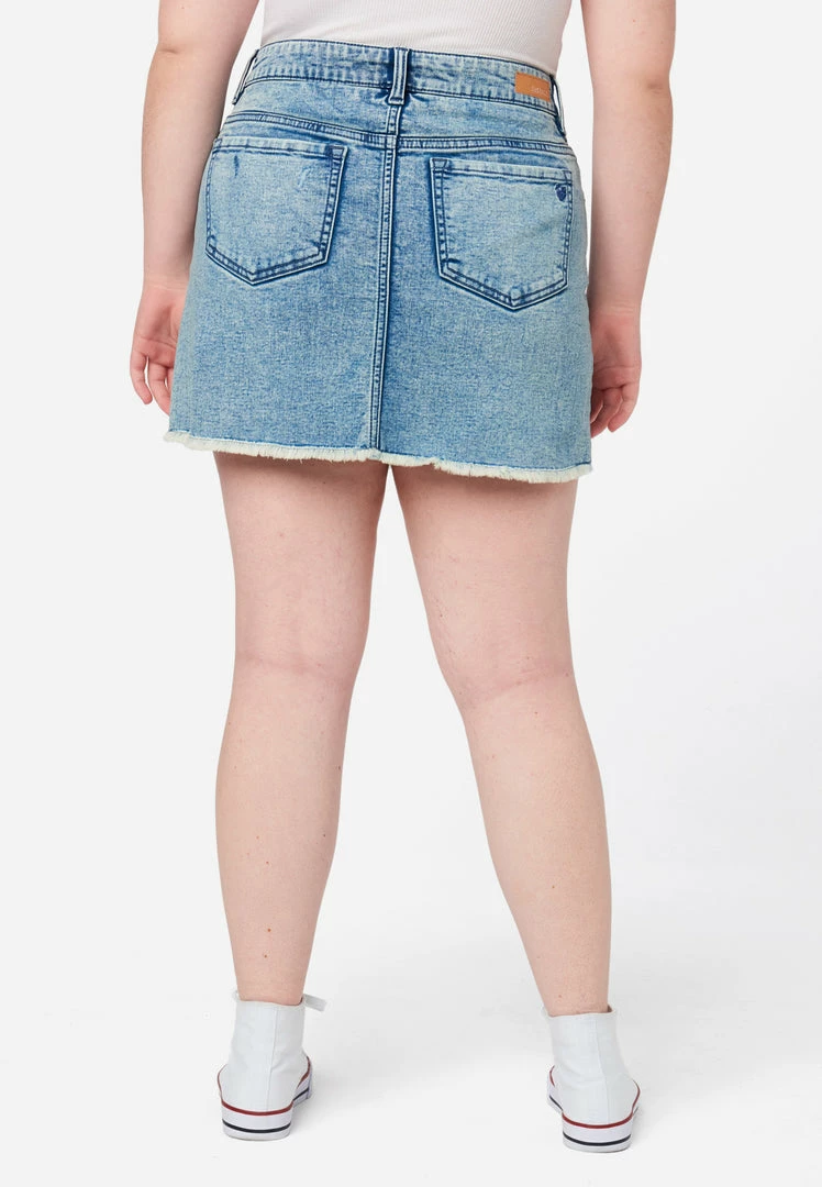 Your girls’ style will never go wrong with a denim skirt, so we designed this one with a medium acid wash to give her style versatility. We made it with stretchy denim that allows her to move with ease. Distressing gives it a vintage feel, while the zip-and-button fly with rainbow buttons offers on-trend appeal. It has a classic mid-rise, belt loops, and slip pockets. And the frayed hemline highlights the mini cut. Pair it with one of our lace-trim camis or graphic tees to complete the look.