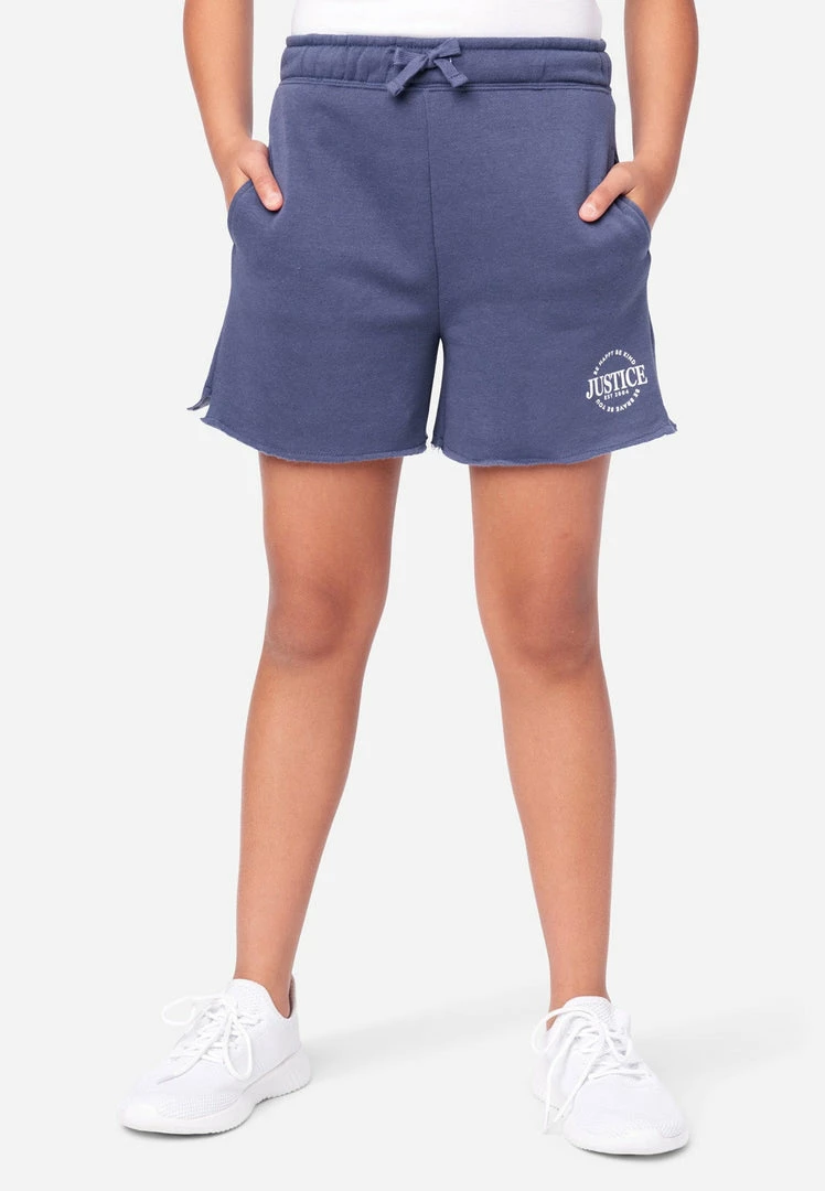 Our girls’ shorts are the perfect style choice whether your girl has a full schedule or a day to chill with friends. The stretchy waistband adjusts for a perfect fit. A Justice logo graphic highlights one side. The raw hemline complements its mid-length. Side pockets leave just enough room for her small essentials. She can mix and match them with hoodies and tees from our Everyday Faves collection––which offers tons of value and is perfect for a girl who’s just discovering her own unique personal style. Plus, the supersoft fabric is made from recycled materials. Which means not only will your girl look good, but she’ll feel good about showing Mother Nature some love, too.