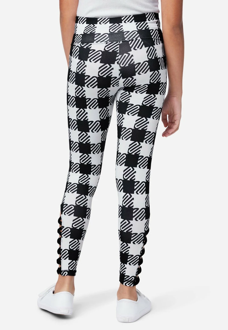Our girls’ leggings are anything but basic, thanks to a bold, iconic pattern. This full-length pair, made from soft stretchy fabric, features a wide comfy waistband and unique lace-up side design. Effortlessly pair them with tees, hoodies, or other essential pieces from our J Sport collection.Â