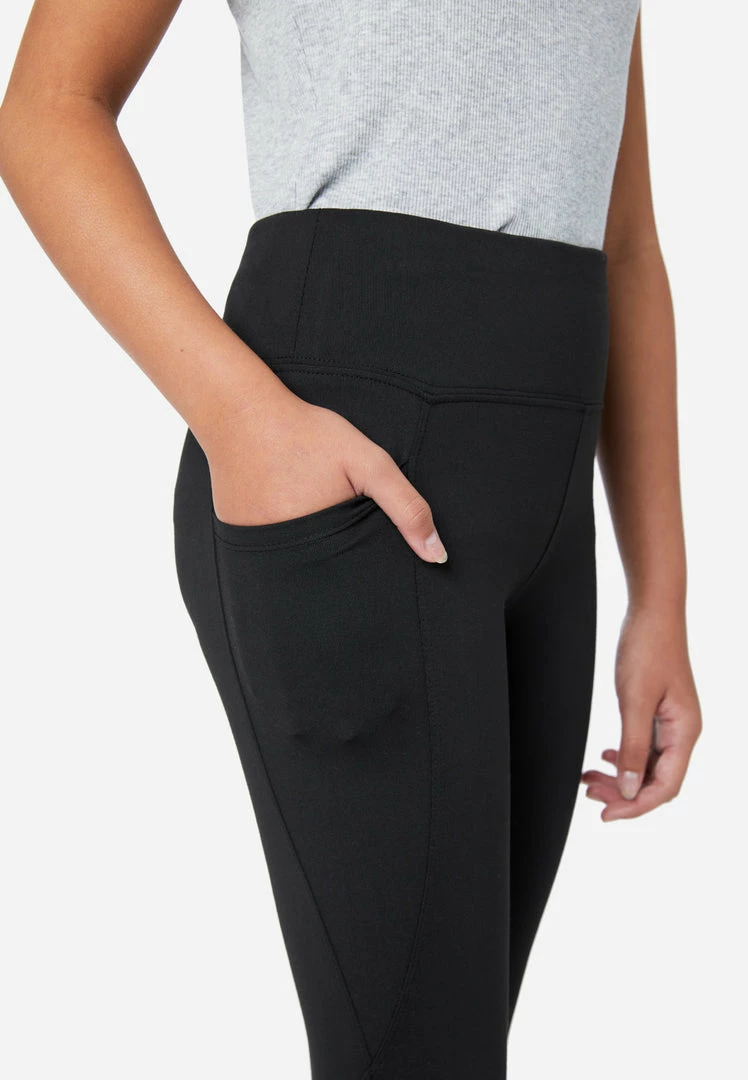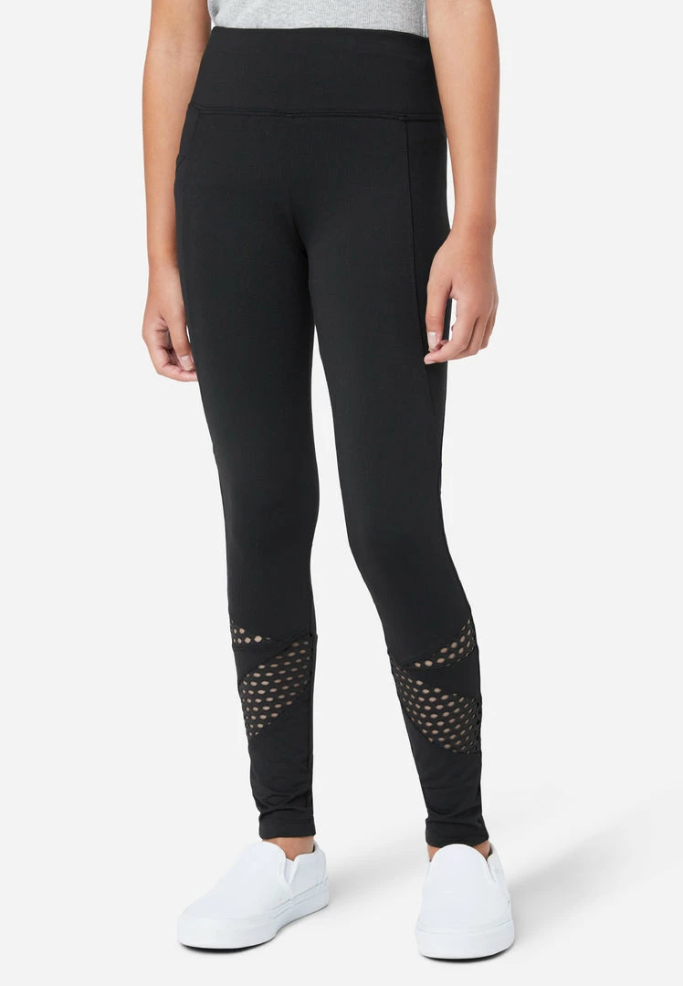 We designed our girls’ leggings with a wide waistband for maximum comfort. It features a small logo on the back. A hint of stretch makes sure they keep up with her activities and fast pace. A pocket on the right side cradles her device. Mesh panels bring a trendy update. And the easy-to-pair hue means these leggings are just waiting to be styled her way—with a brightly colored tee or a simple hoodie.
