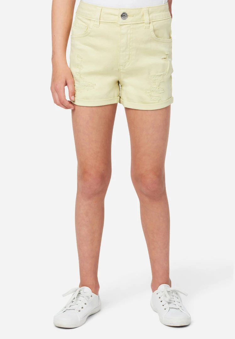 Our girls’ denim shorts have a relaxed fit, classic 5-pocket design, cuffed hems, and a zip-and-button fly. The cotton-blend fabric has a hint of stretch that promises this pair will keep up with all her leaps and strides. Welted seams give them durability. They’re available in a variety of colorful patterns and hues that add visual interest and make them a versatile pairing for her tanks and tees.