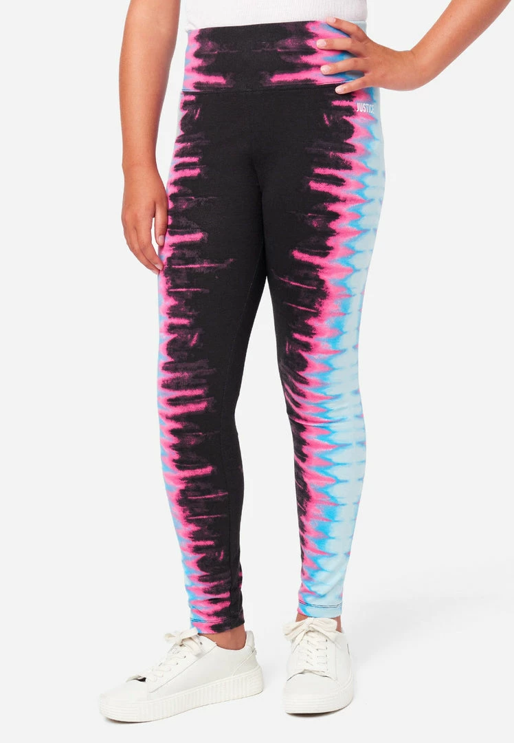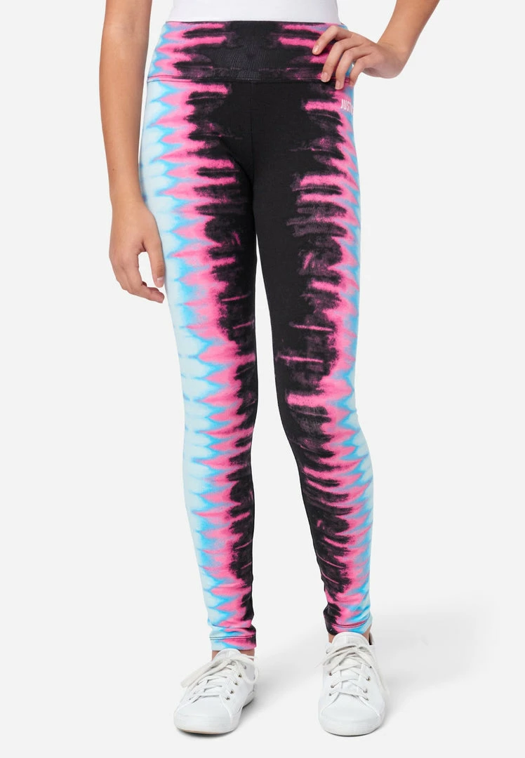 Let her style be as bold as her personality with our girls’ leggings designed with a vibrant color spiral and tie-dye design. This high-waisted pair features a wide high-waistband for all-day comfort. And they’re perfect for mixing and matching with tees in our Everyday Faves collection—which offers tons of value and is perfect for a girl who’s just discovering her own, unique personal style. Plus, they’re made with recycled materials. This means not only will your girl look great while wearing her fashion, but she’ll feel great about her fashion, too.