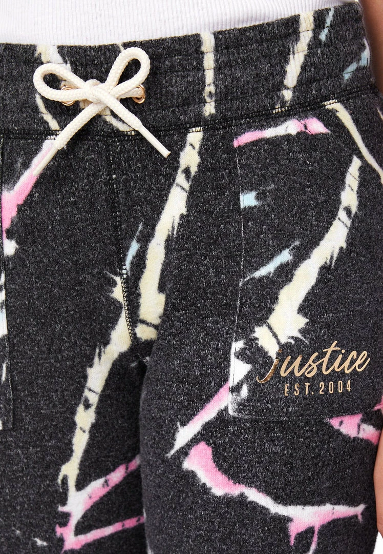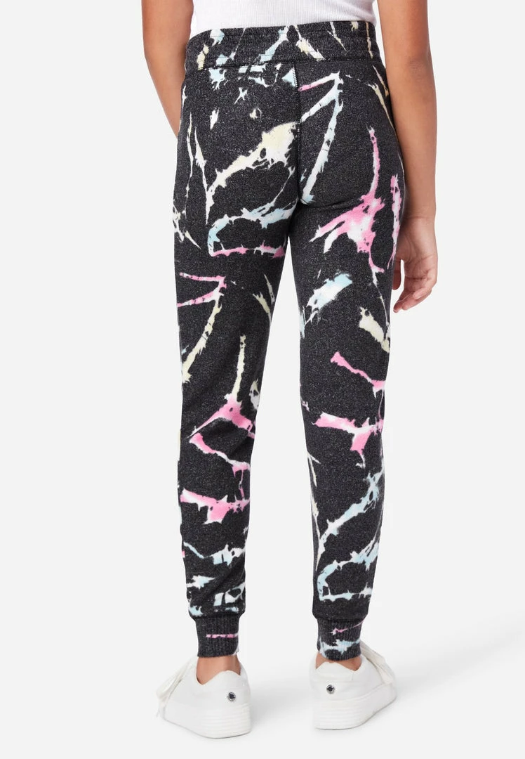 Hacci fabric gives our girls’ joggers a cozy finish. The tie-dye design adds standout style. A stretchy waistband promises easy on-and-off convenience. They have two slip pockets. A small, shimmery graphic punctuates one of the legs. And the stretchy cuffs offer classic style. She can pair them with the matching hoodie for an easy-to-style outfit.