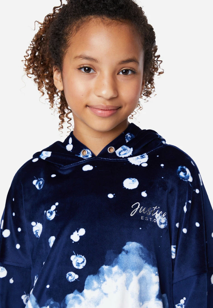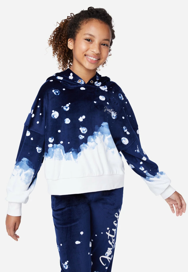 We elevated our girls’ hoodies with all the extra-special details Collection X by Justice is known for, like subtle gold hardware that brings panache to the neckline and offers a hint of shine. A bold allover pattern gives them standout appeal. A Justice logo graphic adorns the front. And the banded hemline and cuffs bring classic style. Your all-star can throw on her hoodie as an extra layer of comfort to wear in the studio to the sidewalk. Plus, she can match it with joggers and other pieces in this capsule collection.