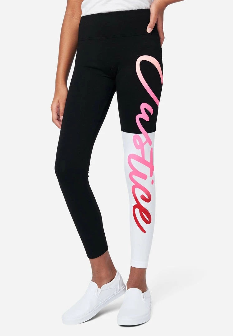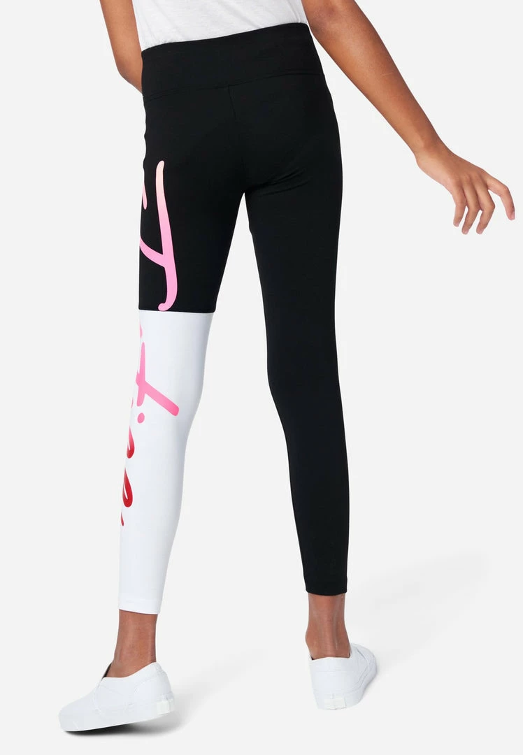 We designed our girls’ leggings with a wide waistband for maximum comfort. A hint of stretch makes sure they keep up with her activities and fast pace. We updated always-in color blocking with an undeniably cool ombrélogo that travels down the left leg. The bold design of these leggings is just waiting to be styled her way—with a brightly colored tank or a simple tee.
