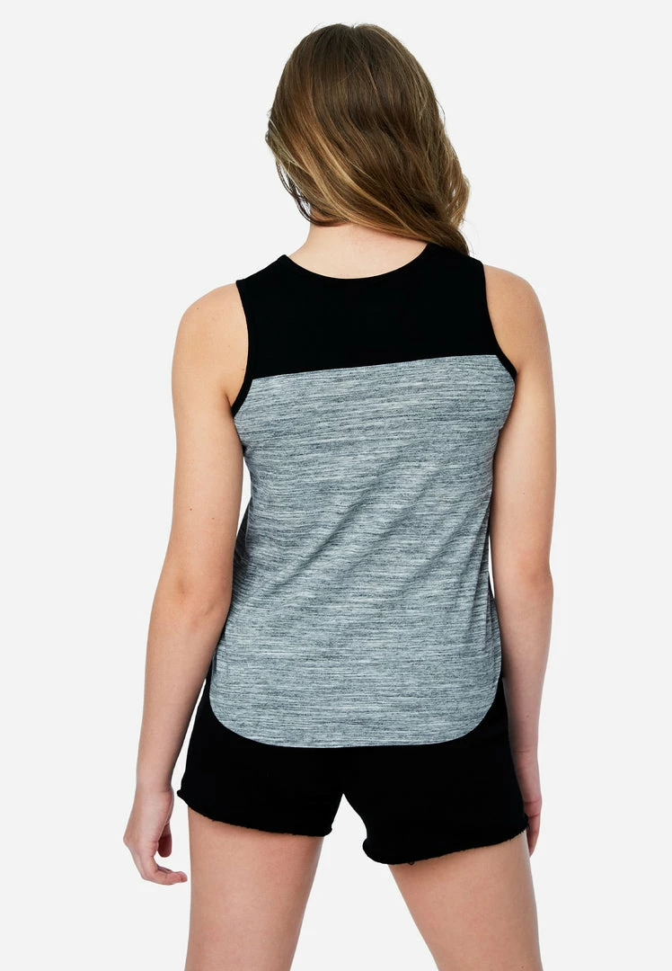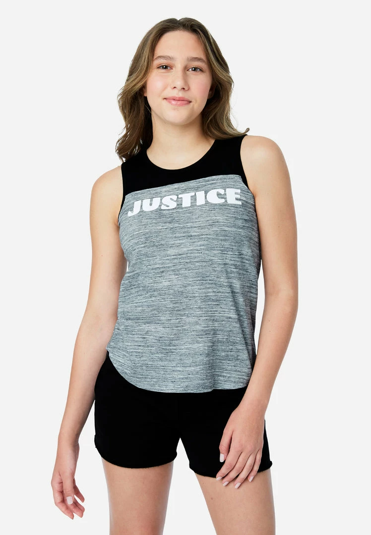 We designed our girls’ tanks with lightweight, cotton-blend fabric for the comfiest wear, ever. Bias binding finishes the neckline and armholes. A bold graphic against the heathered, color-blocked panel highlights the front. And the rounded hemline makes sure her tanks add structure to outfits—even when untucked. Plus, they’re available in an array of easy-to-pair hues that are perfect for matching with shorts in our Everyday Faves collection—which offers tons of value and is perfect for a girl who’s just discovering her own, unique personal style.