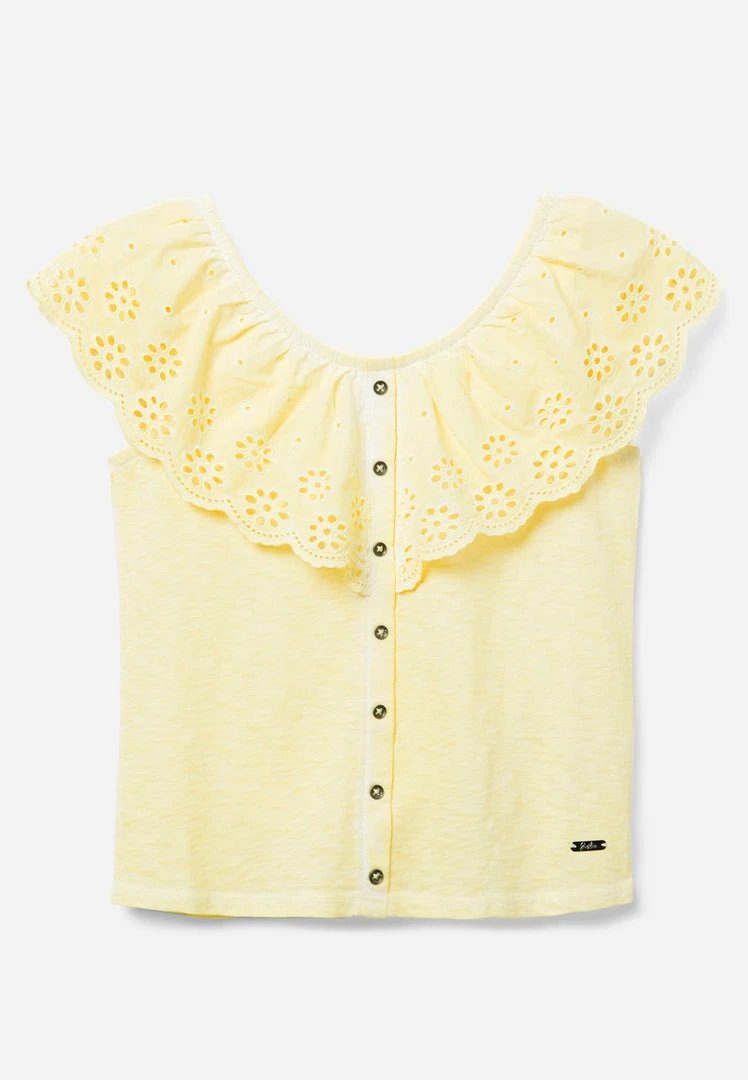 Frilly, scalloped ruffles adorned with ornate embroidery bring a pretty finish to the neckline of our girls’ tanks. The pure-cotton fabric boasts pastels hues and a heathered texture that lends free-spirited allure to your girl’s look. Plus, they pair perfectly with Justice Denim shorts and jeans.