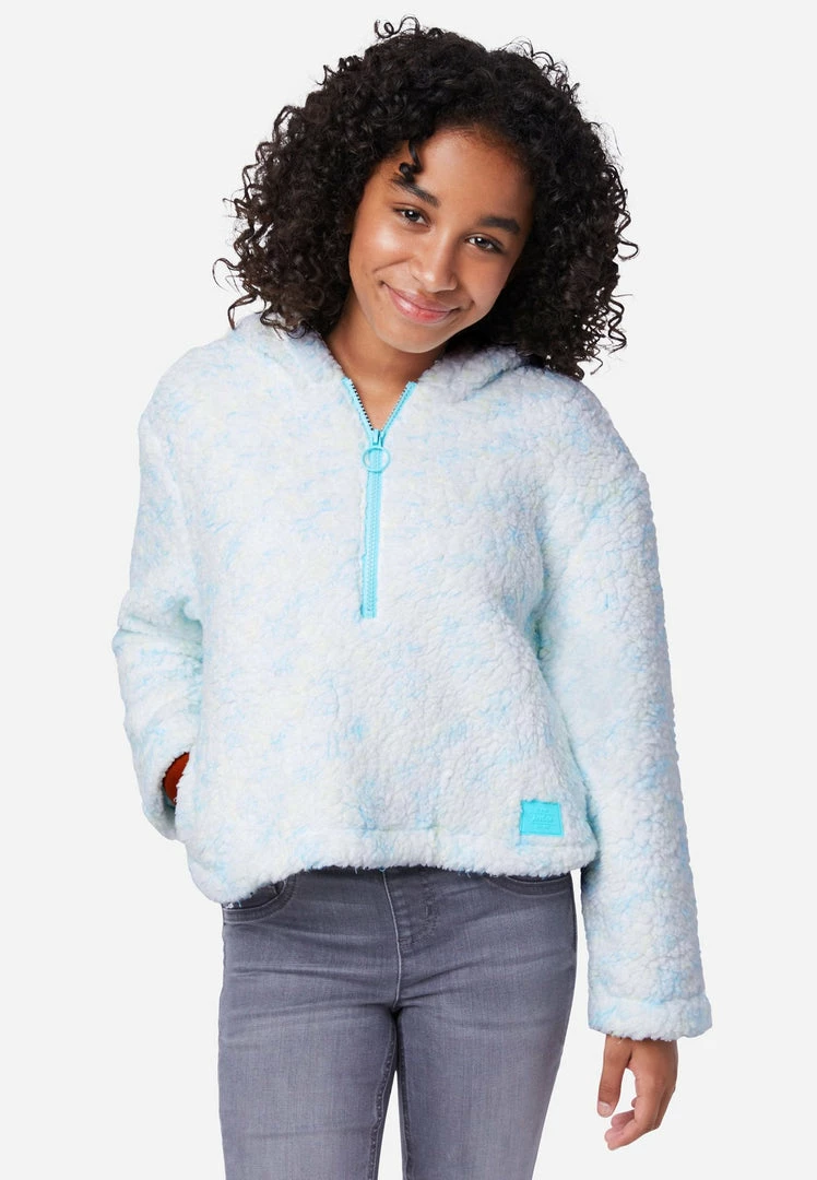 We designed our girls’ hoodies in ultrasoft faux sherpa that makes all her looks extra comfy. A ring punctuates the half-zipper. A subtle pattern brings artful texture to her looks. And the hood keeps cool air at bay on brisk days. Plus, they have two slip pockets.        Â
