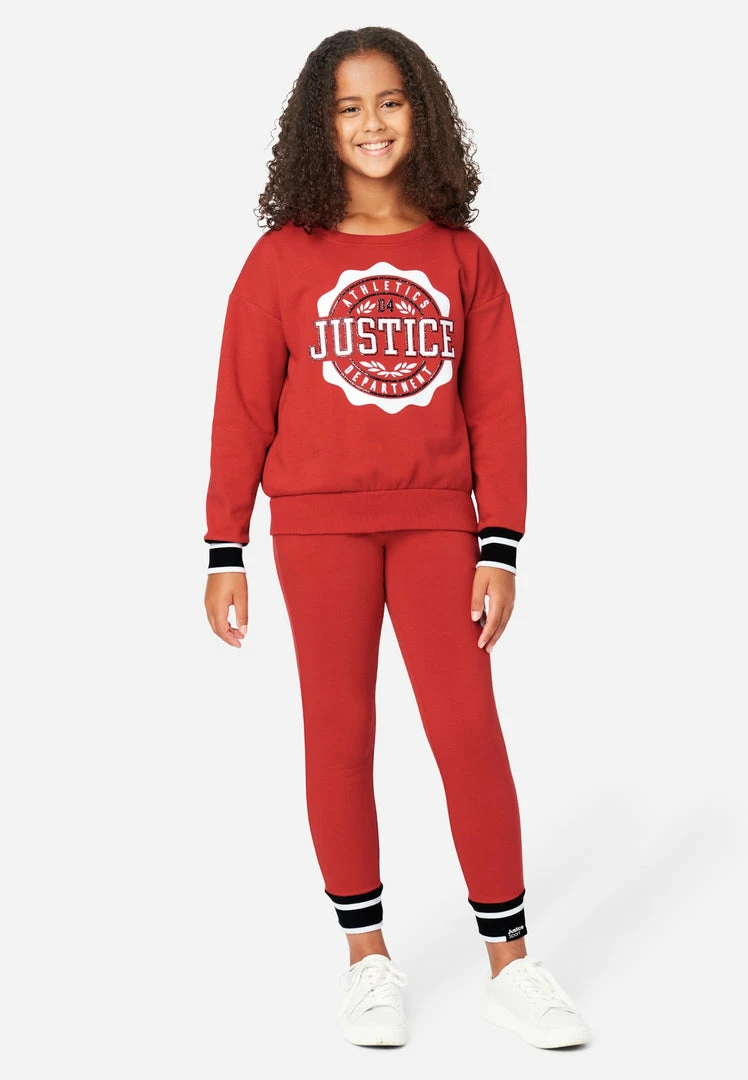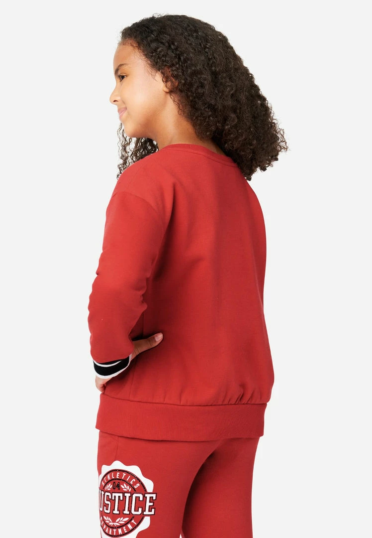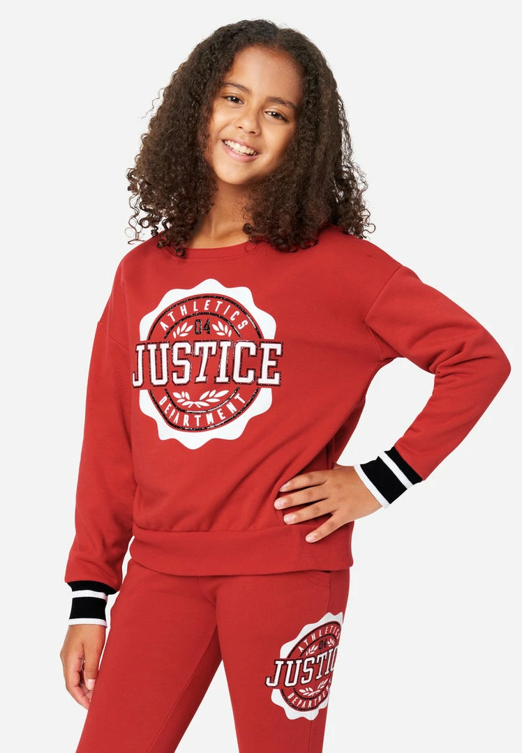 French terry cotton-blend fabric gives our girls’ sweatshirts a cozy finish. A bold graphic highlights the front. The crew neckline, long sleeves, and color-block banded cuffs bring classic style. And the pullover design makes it easy to layer. She can pair them with matching joggers for an easy-to-style outfit.