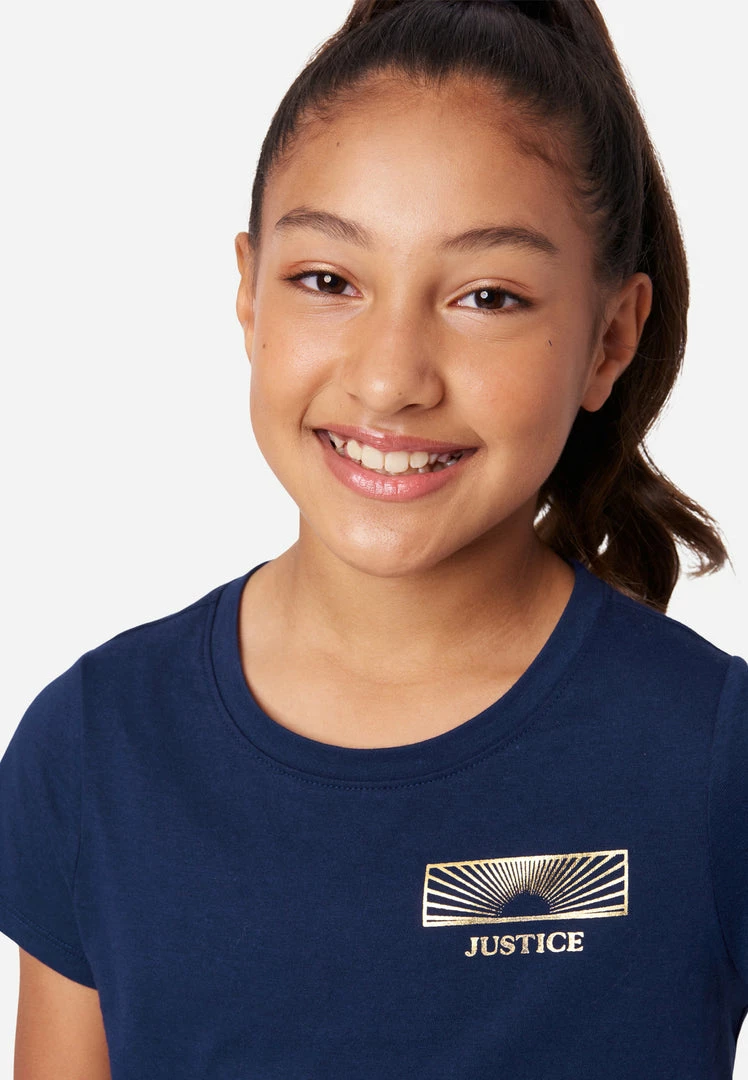 She’ll love the super-soft feel of our girls’ cotton-jersey tee made with recycled materials. Which means not only will your girl look good, but she’ll feel good about showing Mother Nature some love, too. We made them with a classic crew neckline. Cool graphics punctuate the front and back. The cropped design and relaxed cut make them easy to style. To complete her look, your girl can style it with a pair of leggings from our Everyday Faves collection—which offers tons of value and is perfect for a girl who’s just discovering her own, unique personal style.