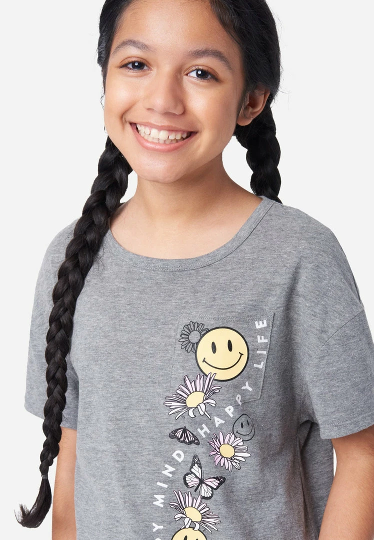 Our girls’ tees feature easy-to-pair hues with a bold graphic that boasts a positive sentiment. The relaxed fit gives her comfort and freedom of movement throughout her day. The cropped length adds the right amount of on-trend appeal. They are perfect for mixing and matching with shorts and leggings from our Everyday Faves collection––which offers tons of value and is perfect for a girl who’s just discovering her own unique personal style. Plus, the supersoft fabric is made from recycled materials. Which means not only will your girl look good, but she’ll feel good about showing Mother Nature some love, too.
