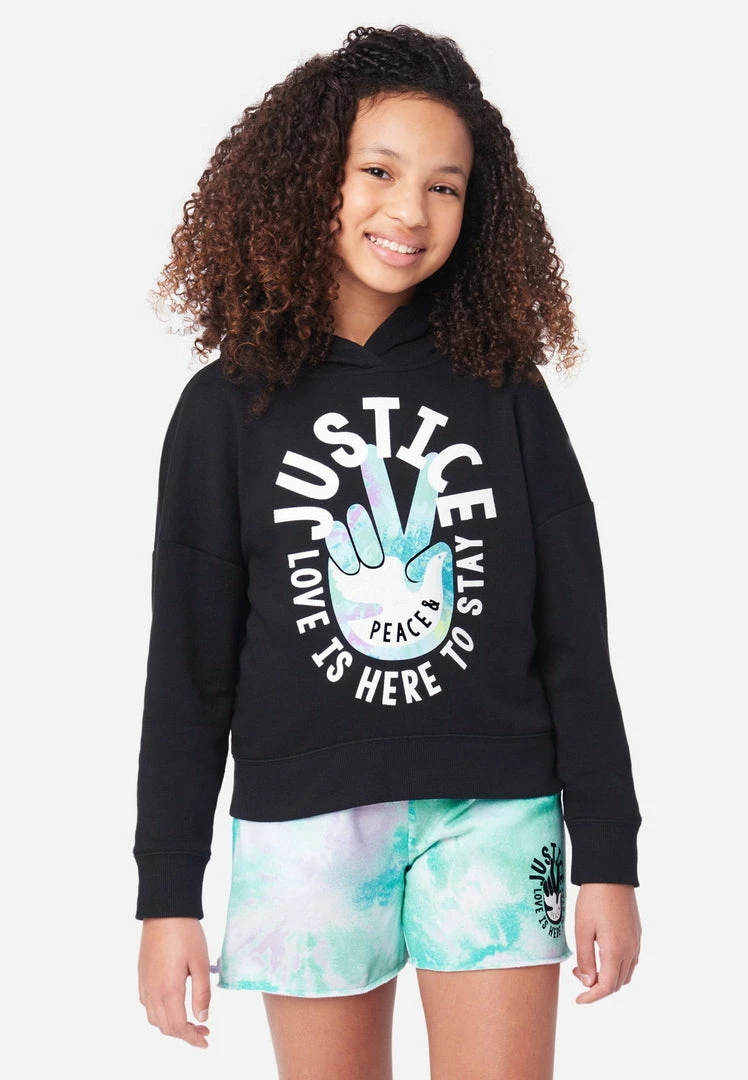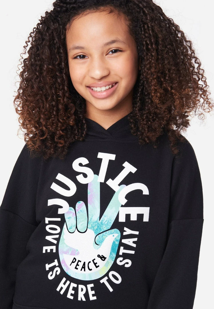 Our girls’ hoodies are cut with a relaxed fit to give your girl comfort and freedom of movement throughout her day. The pullover design promises easy layering. The bold graphic showcases a positive sentiment. They sport a classic hood, plus banded cuffs and hemline. And the supersoft fabric is made from recycled materials. Which means not only will your girl look good, but she’ll feel good about showing Mother Nature some love, too. She can mix and match them with leggings from our Everyday Faves collection––which offers tons of value and is perfect for a girl who’s just discovering her own unique personal style.