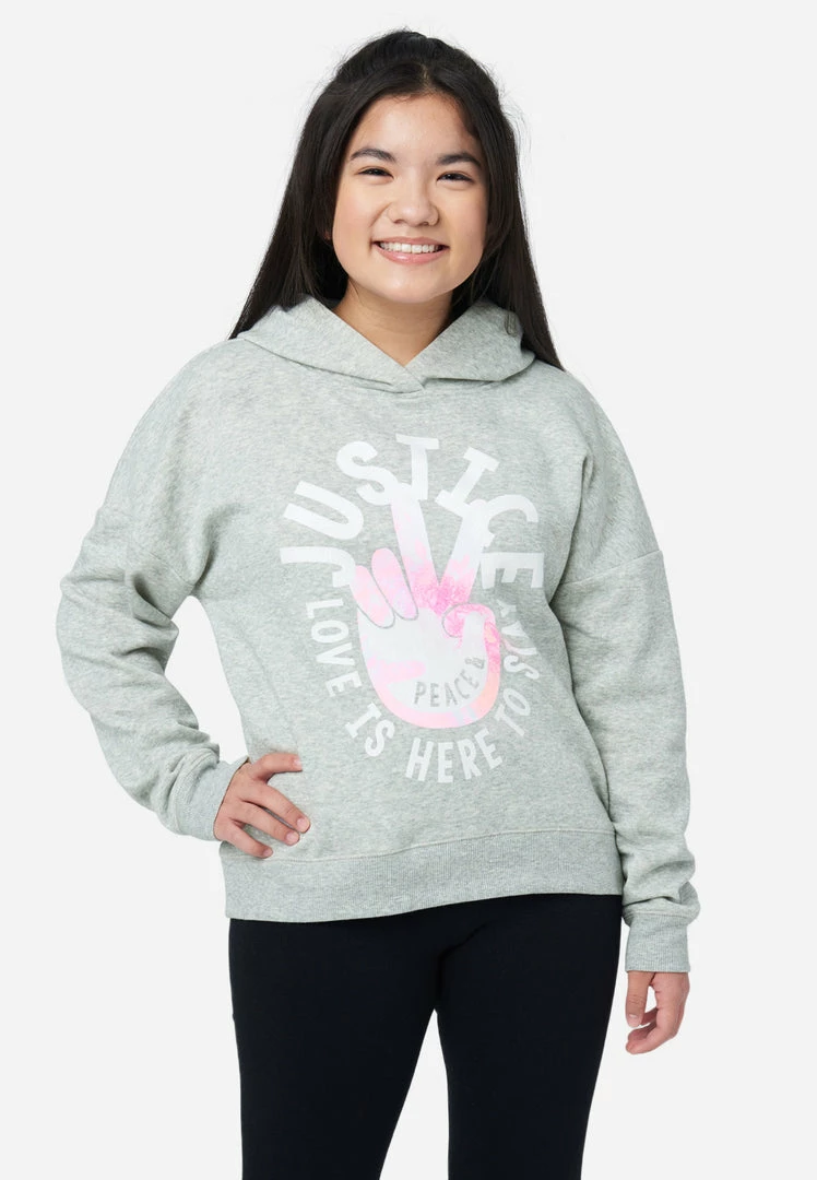 Our girls’ hoodies are cut with a relaxed fit to give your girl comfort and freedom of movement throughout her day. The pullover design promises easy layering. The bold graphic showcases a positive sentiment. They sport a classic hood, plus banded cuffs and hemline. And the supersoft fabric is made from recycled materials. Which means not only will your girl look good, but she’ll feel good about showing Mother Nature some love, too. She can mix and match them with leggings from our Everyday Faves collection––which offers tons of value and is perfect for a girl who’s just discovering her own unique personal style.