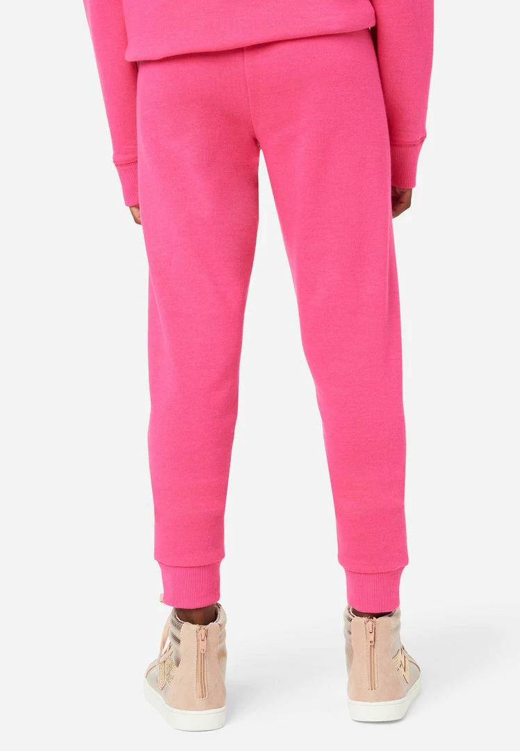Cotton-blend fleece fabric gives our girls’ joggers a cozy finish. A sweet bow is stationed on the stretchy waistband. Color blocking highlights the banded cuffs. A bright hue brings standout style. And a graphic punctuates the front of one of the legs. She can style them with other easy-to-pair styles from our Everyday Faves collection—which offers tons of value and is perfect for a girl who’s just discovering her own, unique personal style.Â