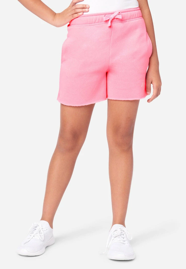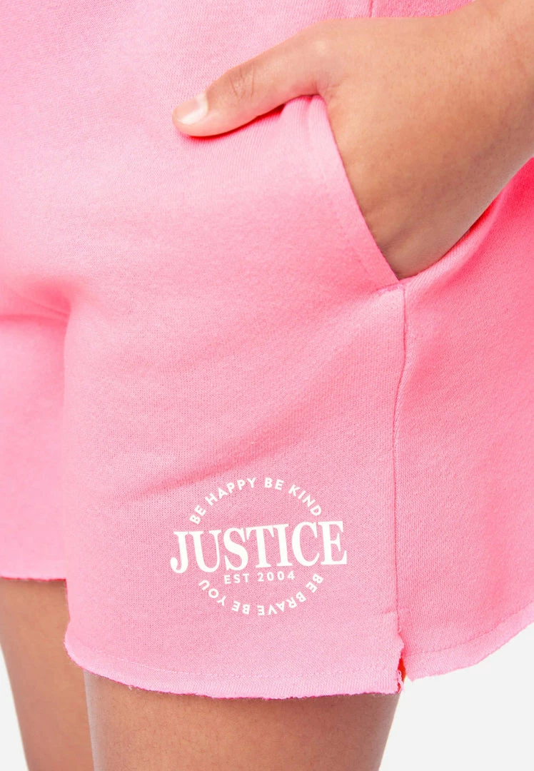 Our girls’ shorts are the perfect style choice whether your girl has a full schedule or a day to chill with friends. The stretchy waistband adjusts for a perfect fit. A Justice logo graphic highlights one side. The raw hemline complements its mid-length. Side pockets leave just enough room for her small essentials. She can mix and match them with hoodies and tees from our Everyday Faves collection––which offers tons of value and is perfect for a girl who’s just discovering her own unique personal style. Plus, the supersoft fabric is made from recycled materials. Which means not only will your girl look good, but she’ll feel good about showing Mother Nature some love, too.