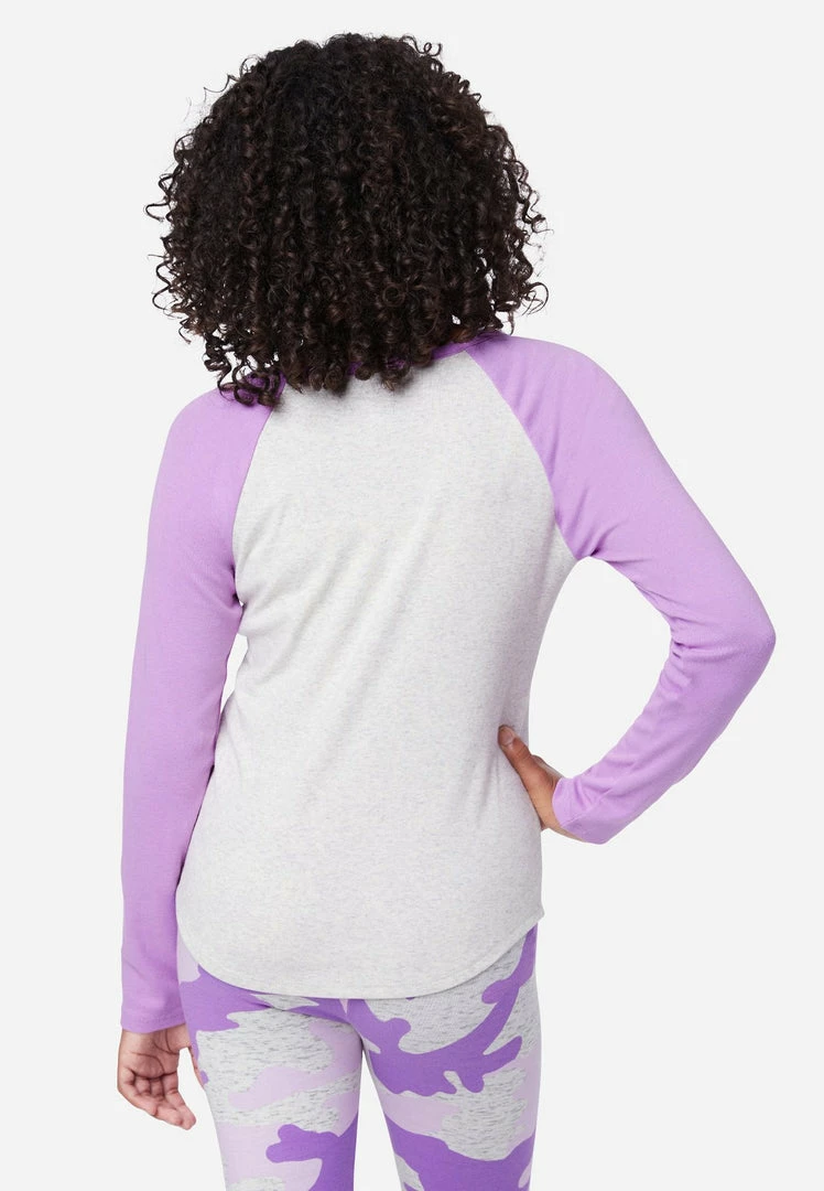 Our girls’ raglan tees have an on-trend color-block design. They have a crew neckline. A bold graphic highlights the front. The soft cotton-blend fabric promises daylong comfort. And they easily pair other essentials in our Everyday Faves collection—which offers tons of value and is perfect for a girl who’s just discovering her own unique personal style. Plus, they’re made with recycled materials. This means not only will your girl look good while wearing her fashion, but she’ll feel good about her fashion, too.