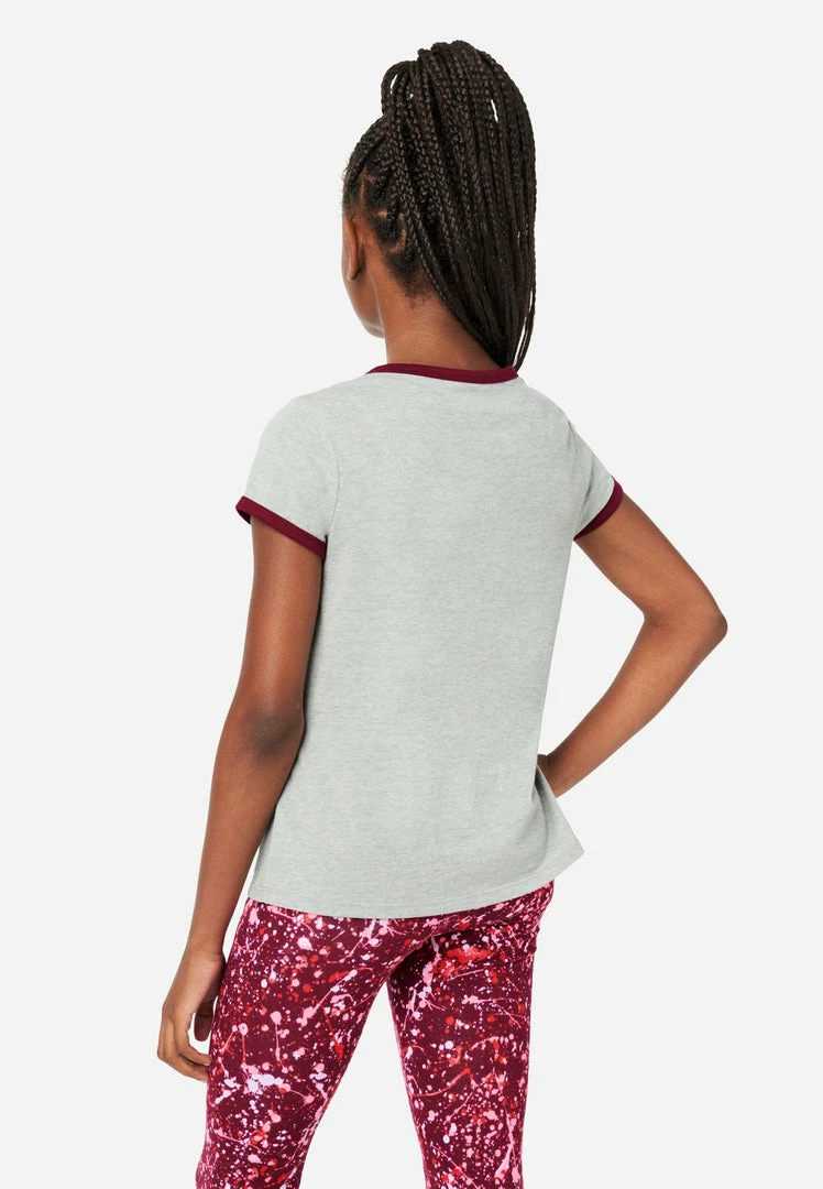These girls’ tees are our take on the retro ringer style—updated with a bold graphic. Color-block bias binding finishes the scoop neckline and armholes. And we created them in a soft cotton-blend fabric that promises the comfiest wear, ever. Plus, they’re made with recycled materials. This means not only will your girl look good while wearing her fashion, but she’ll feel good about her fashion, too.