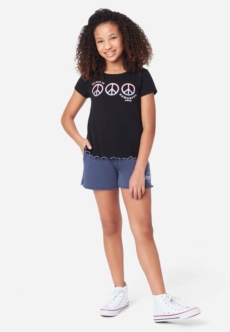 Our girls’ scoop neck tees feature a bold graphic to match your girls’ personality perfectly. The wavy lettuce-trim highlights the hemline. Its relaxed fit promised daylong comfort. She’ll love pairing it with styles from our Everyday Faves collection—which offers tons of value and is perfect for a girl who’s just discovering her own unique personal style. Plus, the supersoft fabric is made from recycled materials. Which means not only will your girl look good, but she’ll feel good about showing Mother Nature some love, too.