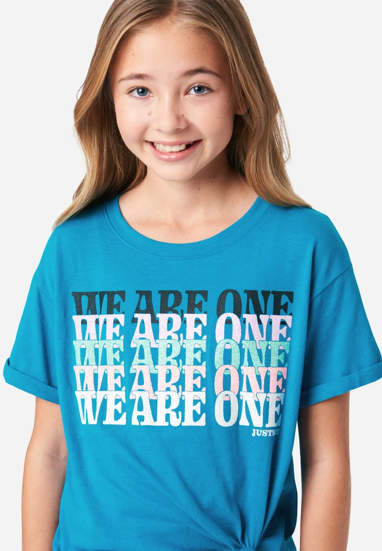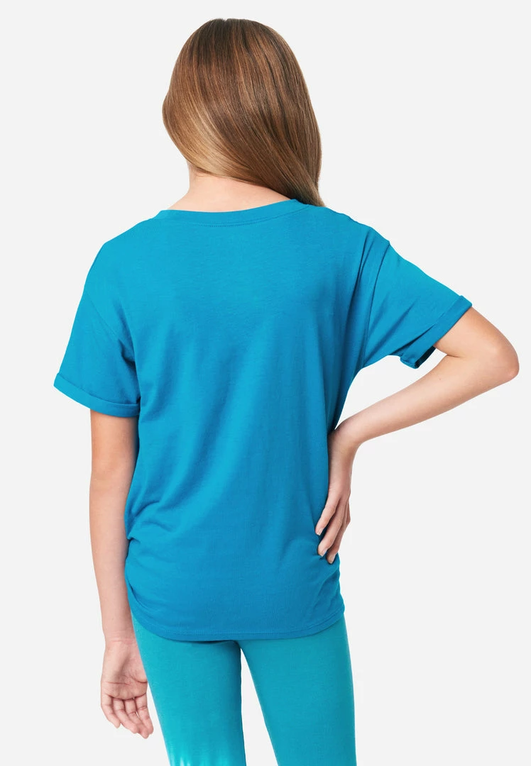 Our girls’ crew neck tee has a bold graphic with a positive sentiment. The relaxed fit gives your girl comfort and freedom of movement throughout the day. The tie-front design and rolled cuffs add the right amount of edge. It’s perfect for mixing and matching with shorts and leggings from our Everyday Faves collection––which offers tons of value and is perfect for a girl who’s just discovering her own unique personal style. Plus, the supersoft fabric is made from recycled materials. Which means not only will your girl look good, but she’ll feel good about showing Mother Nature some love, too.