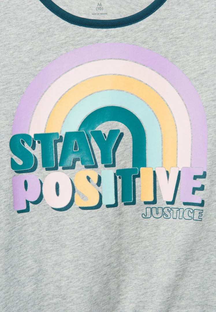 This is our take on the retro ringer style. We updated it with contrast bias binding around a scoop neckline and a tie at the front hemline. A graphic with positive sentiments adorns the front. And we designed our girls’ tees in a lightweight cotton-blend fabric that promises the comfiest wear, ever. Plus, they’re available in an array of easy-to-pair hues that are perfect for mixing and matching with leggings, shorts, and other essentials in our Everyday Faves collection—which offers tons of value and is perfect for a girl who’s just discovering her own, unique personal style.