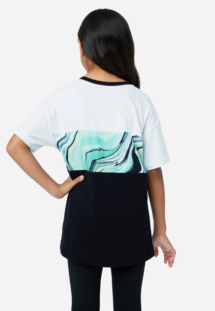 Our girls’ tees have a standout color block design. A contrasting hue finishes the neckline. A cool graphic highlights the front. A Justice Sport tag punctuates one of the sleeves. The soft cotton-blend fabric promises daylong comfort. And the trendy oversized cut lends full coverage and makes them perfect for layering over leggings and other bottoms in our J Sport collection.