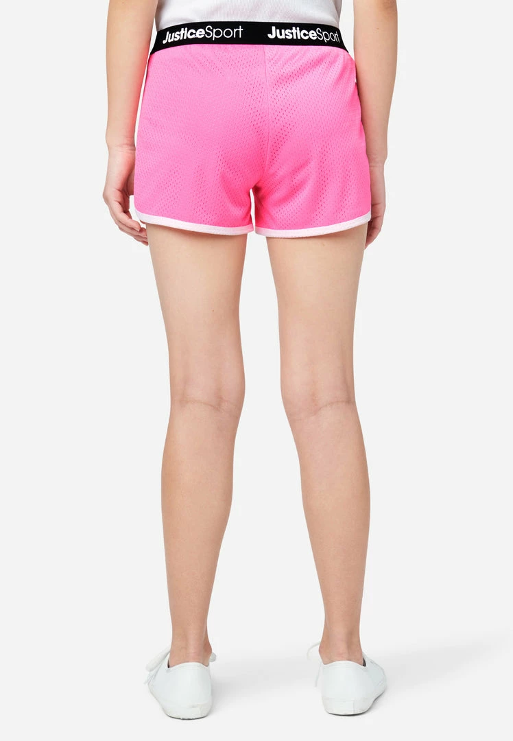 We designed our girls’ dolphin shorts with bold hues that highlight the stretchy logo tape waistband. The hemline has subtle curving that brings retro vibes to this style and promises freedom of movement. They’re made with a lightweight mesh fabric that offers the breeziest wear, ever. Plus, they’re perfect for mixing and matching with tanks and tees from our J Sport collection.