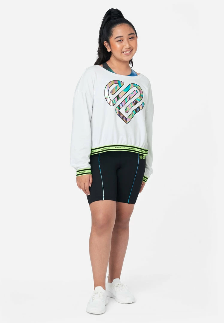 Amp up your girls’ warm-weather style with our girls’ bike shorts. We designed these with just the perfect amount of shine to add to daily looks, with a wide waistband and piping on the front. And a J Sport logo graphic highlights one side of this soft and comfy pair. She’ll love creating outfits with tees and tanks from our J Sport collection.
