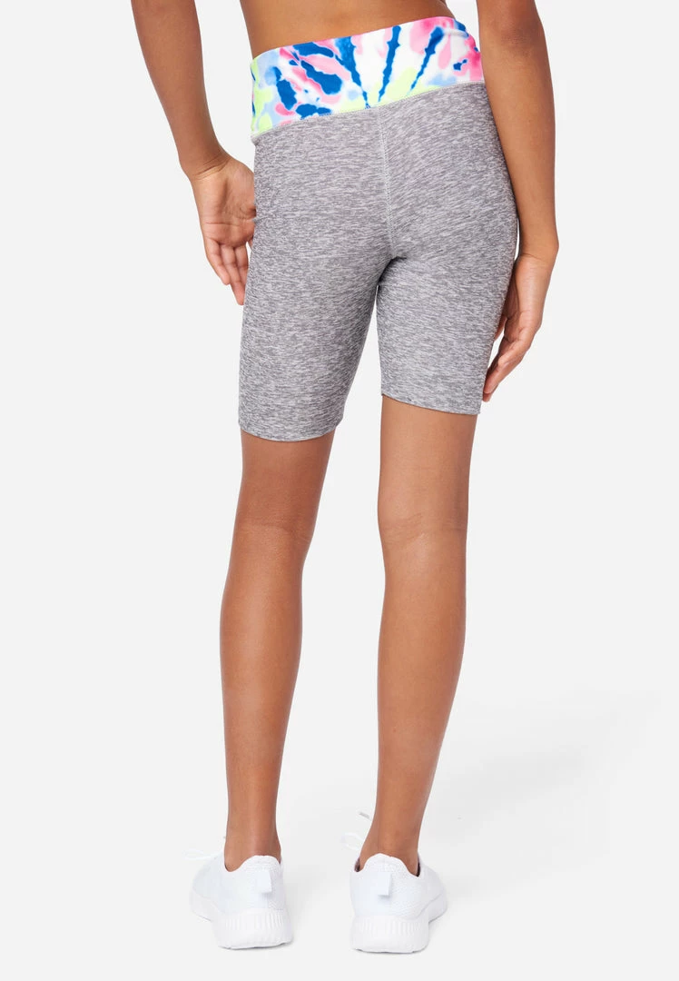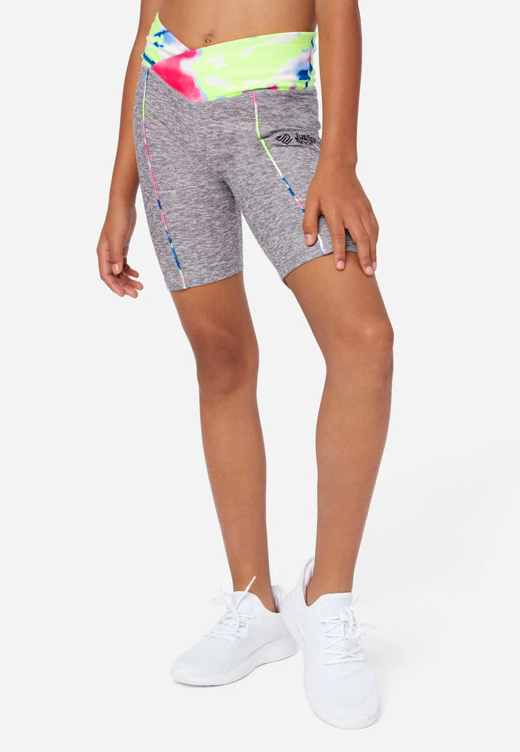 Amp up your girls’ warm-weather style with our girls’ bike shorts. The tie-dye crossover waistband and piping on the front give the allover heathered fabric a splash of color. A J Sport logo graphic highlights one side of this soft and comfy pair. She’ll love creating outfits when she pairs them with tees and tanks from our J Sport collection.