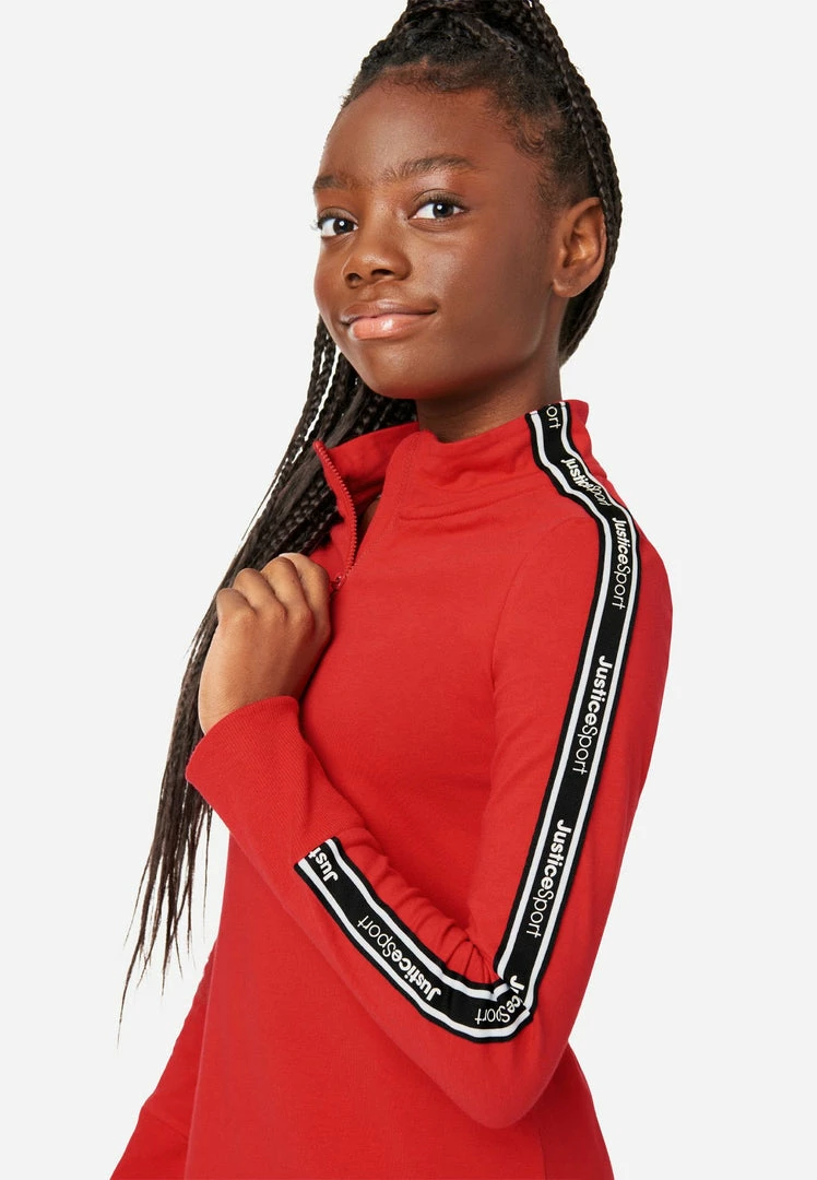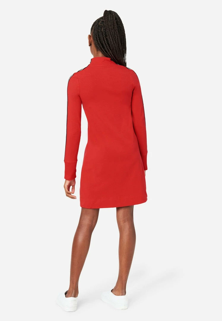 Our wear-everywhere, girls’ dresses are the all-in-one outfit that makes styling easy. The half-zip neckline gives them a relaxed vibe. Stretch-cotton single-jersey-knit fabric gives it a casual finish. Thumbholes at the banded cuffs promise a fuss-free fit. Plus, logo taping down the long sleeves is an unexpected sporty detail.