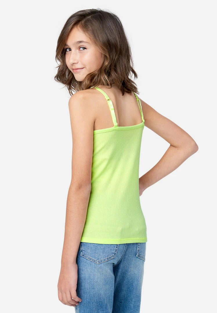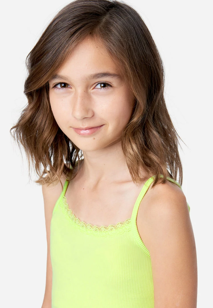 Dainty lace finishes the scoop neckline on our classic girls’ tanks. Bias binding finishes the spaghetti straps and armholes. An embroidered Justice logo highlights the front. The cotton-blend fabric promises daylong comfort. They’re available in an array of easy-to-pair hues that are perfect layering under tops or mixing and matching with leggings. Plus, they’re made with recycled materials. This means not only will your girl look good while wearing her fashion, but she’ll feel good about her fashion, too.