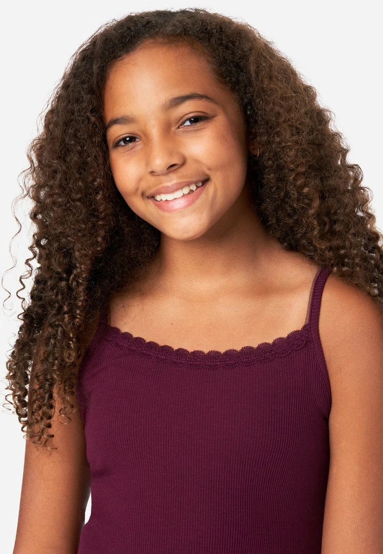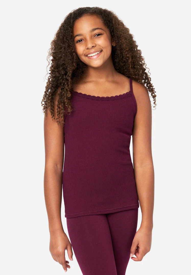 Dainty lace highlights the scoop neckline on our classic girls’ tanks. Bias binding finishes the adjustable spaghetti straps and armholes. And the cotton-blend fabric promises daylong comfort. They’re available in an array of easy-to-pair hues that are perfect layering under tops or mixing and matching. Plus, they’re made with recycled materials. This means not only will your girl look good while wearing her fashion, but she’ll feel good about her fashion, too.