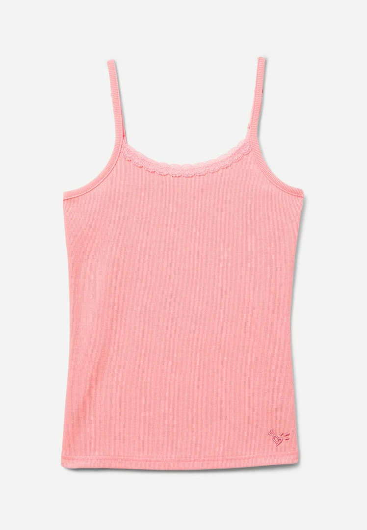 Dainty lace finishes the scoop neckline on our classic girls’ tanks. Bias binding finishes the spaghetti straps and armholes. An embroidered Justice logo highlights the front. And the cotton-blend jersey fabric promises daylong comfort. Plus, they’re available in an array of easy-to-pair hues that are perfect layering under tops or mixing and matching with shorts, skirts, and other essentials in our Everyday Faves collection—which offers tons of value and is perfect for a girl who’s just discovering her own, unique personal style.