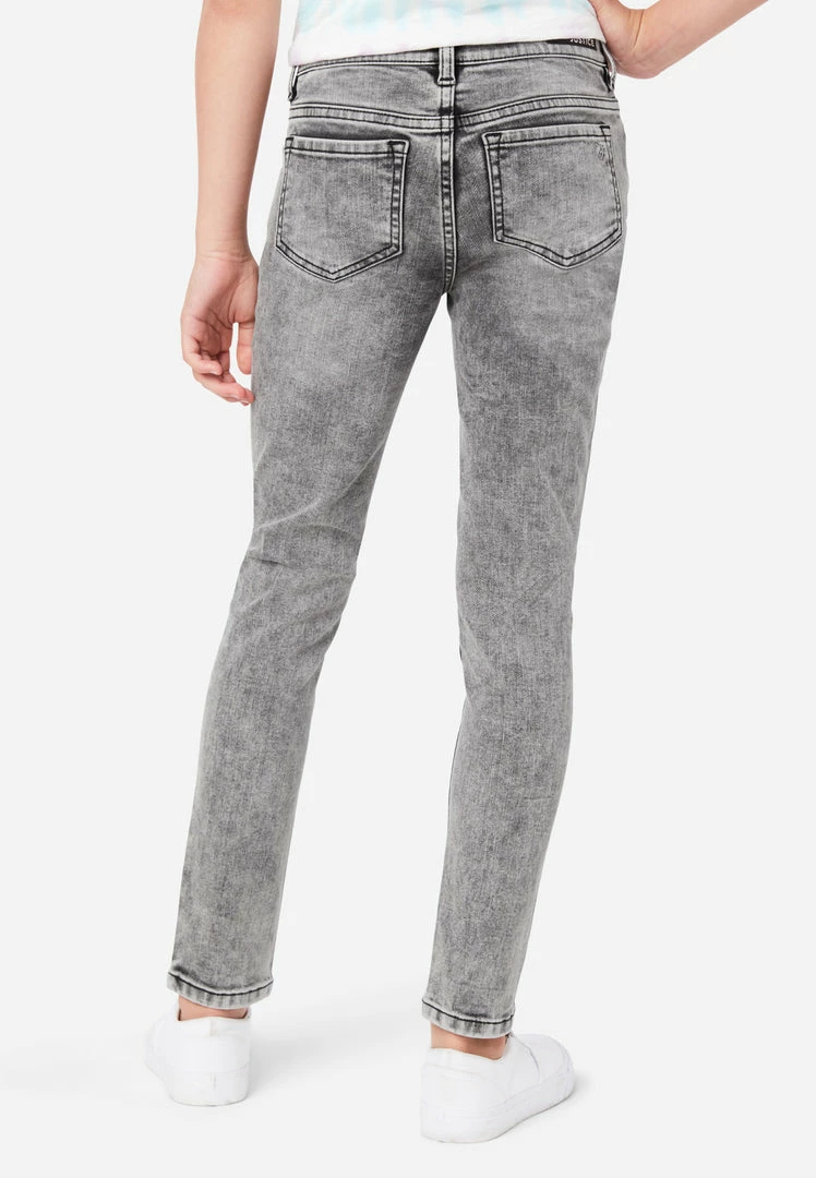 Our girls’ jean leggings have a contour waistband—that keeps up with all her movement. Rise in the back prevents gapping. The legging-like fit and mid-rise offer classic style. And welted seams make them super-durable. They’re perfect for pairing with her favorite tees and sweatshirts. Plus, the comfy, stretch-cotton fabric is made with Repreve® denim—which is created using recycled materials. This means not only will your girl look good while wearing her fashion, but she’ll feel good about her fashion, too.Â