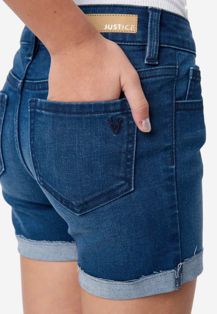 Our girls’ denim shorts have a classic 5-pocket design, cuffed hems, and a close fit. We updated them with a midi length for extra coverage. The wash makes them a versatile pairing for her tanks and tees. Plus, the cotton-blend fabric has a hint of stretch that promises this pair will keep up with all her leaps and strides.