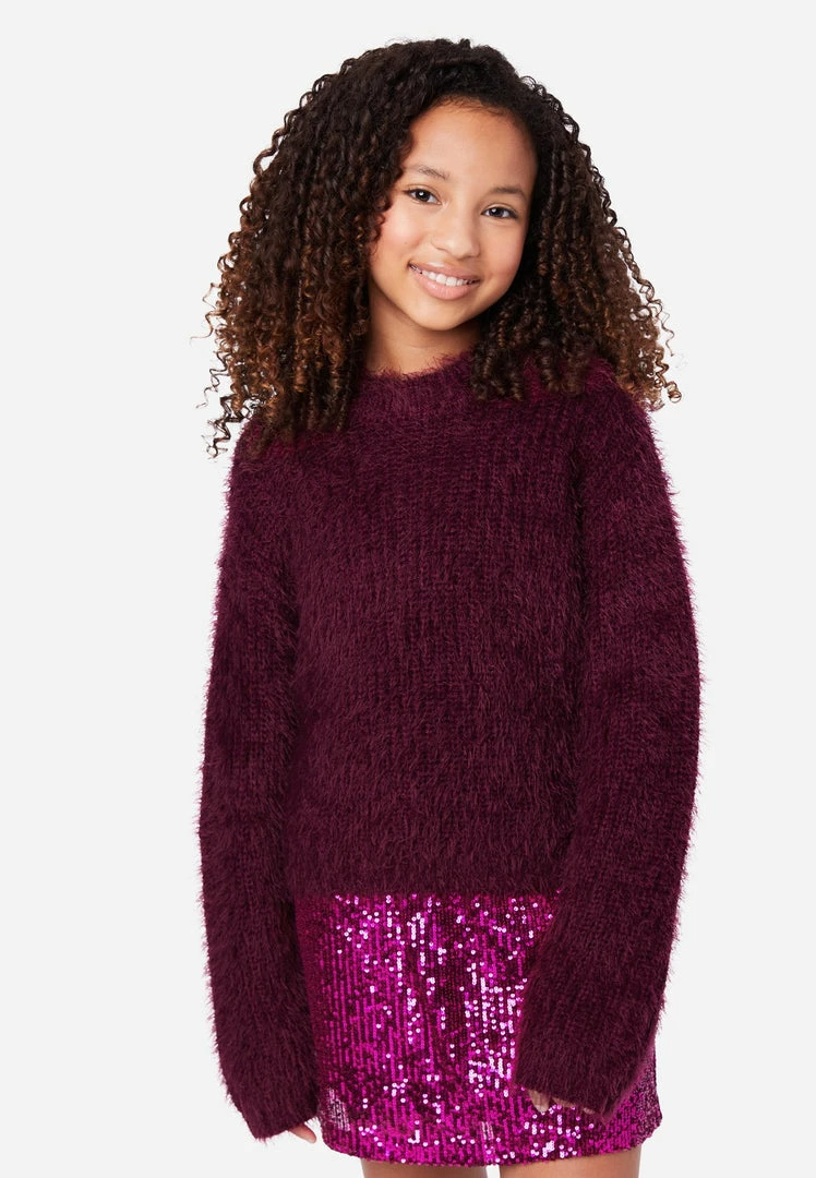 Super-soft chenille gives our girls’ sweater a cozy finish. The pullover design promises easy layering. Effortlessly pair it with Justice denim.