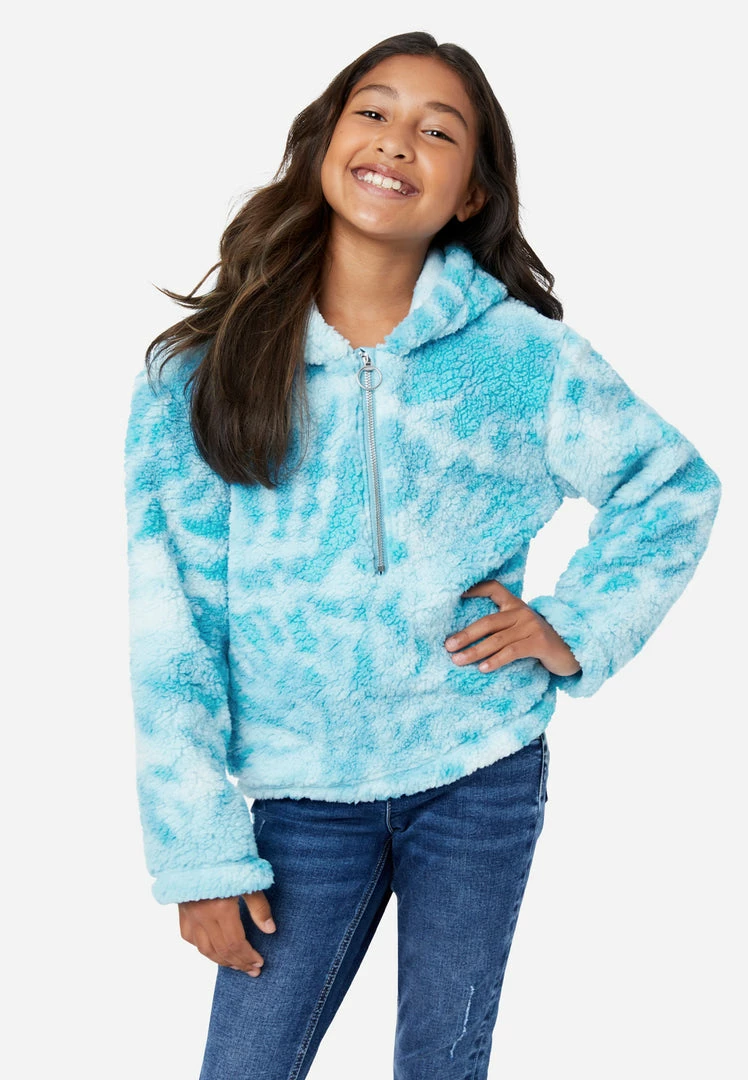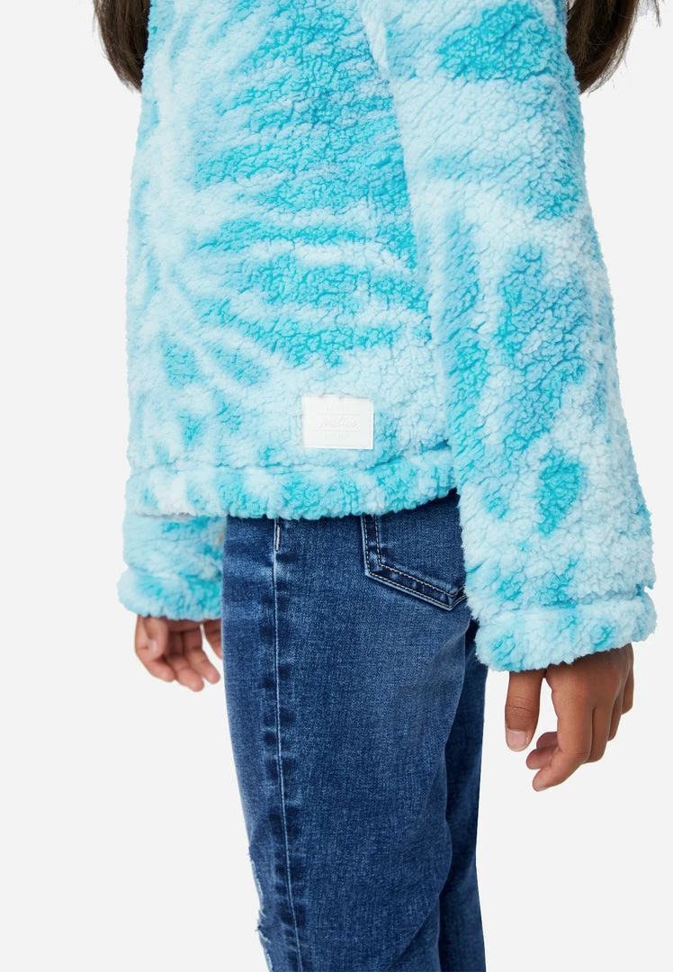 We designed our girls’ hoodies in ultrasoft faux sherpa that makes all her looks extra comfy. A ring punctuates the shiny half-zipper. A subtle allover pattern brings artful texture to her looks. A Justice logo patch adorns the front. And the hood keeps cool air at bay on brisk days. Â