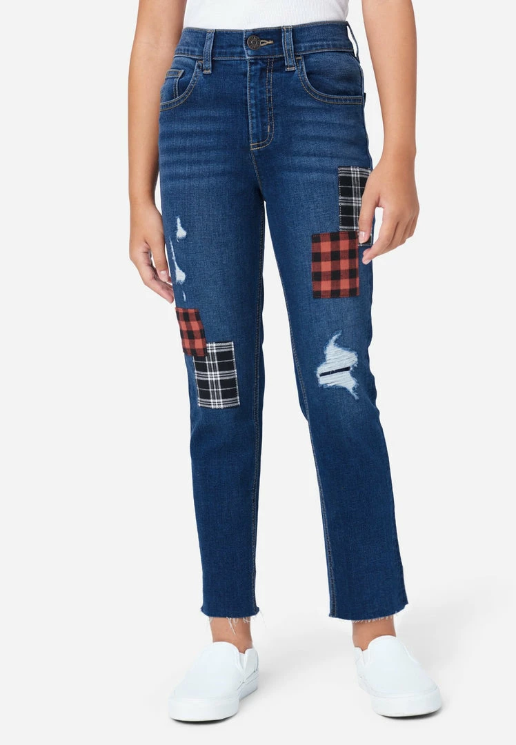 Our girls’ denim jeans have a relaxed fit, the traditional 5 pockets, and a zip-and-button fly. The front has a patchwork design with different plaid patterns. Rise in the back prevents gapping. The mid-rise offers classic style. Welted seams give them durability. They’re perfect for pairing with her favorite tees and sweatshirts. Plus, the comfy, stretch-cotton fabric is made with recycled materials. This means not only will your girl look good while wearing her fashion, but she’ll feel good about her fashion, too.